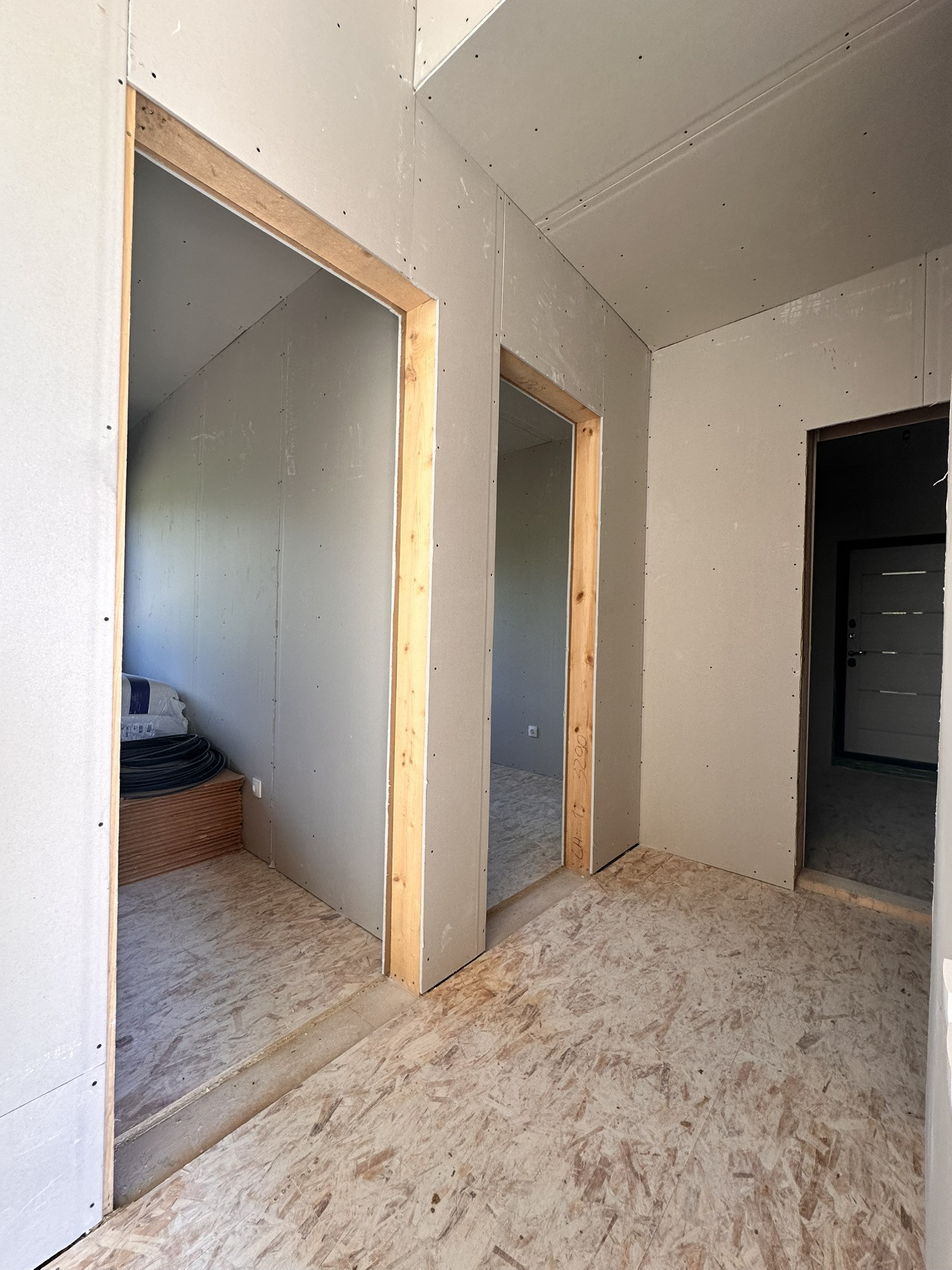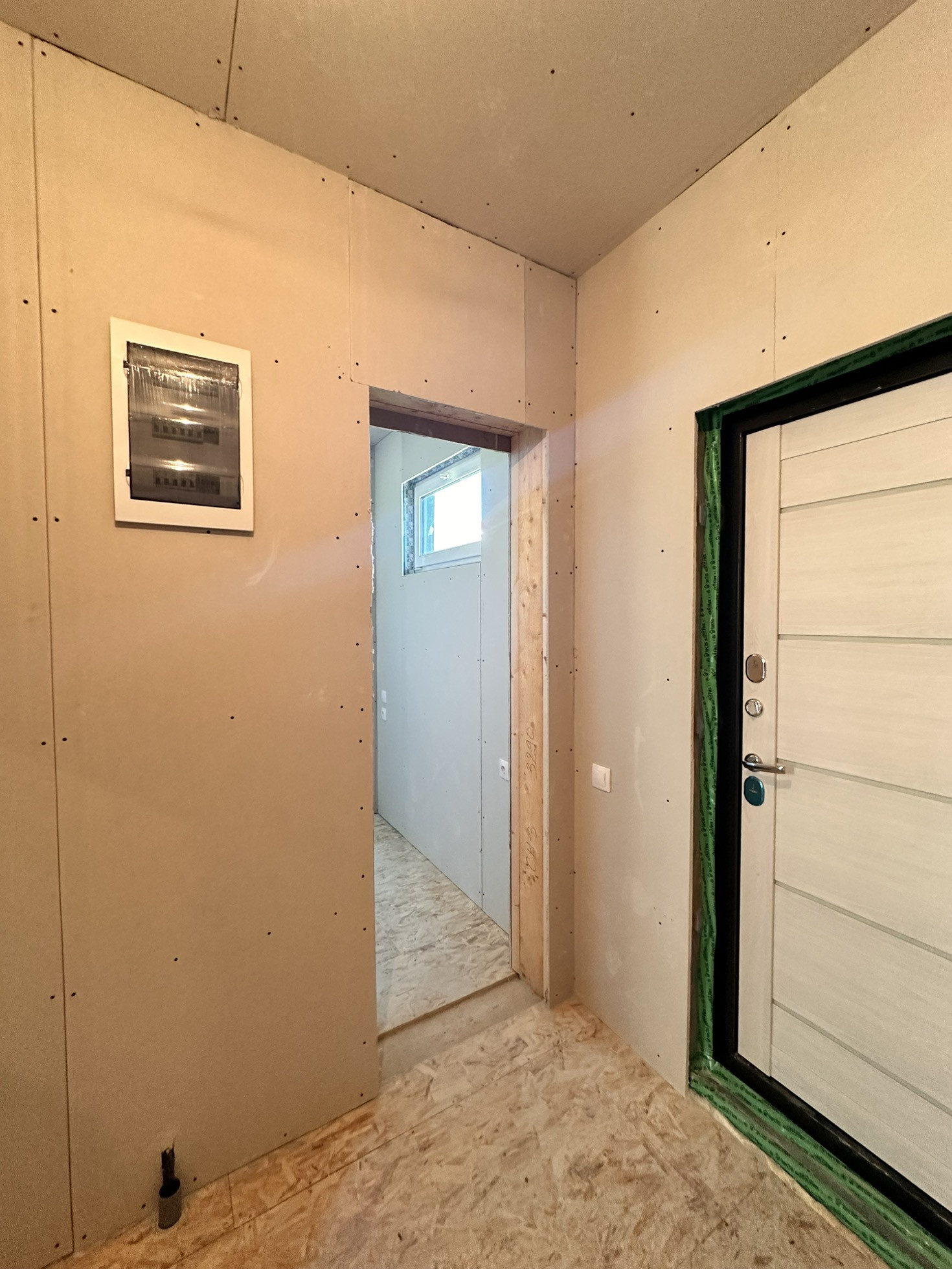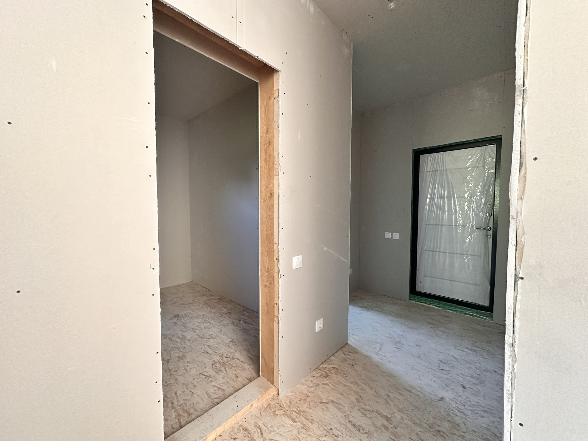 Проведено и разведено по дому электричество. Установлены все розетки, выключатели (есть схема разводки).