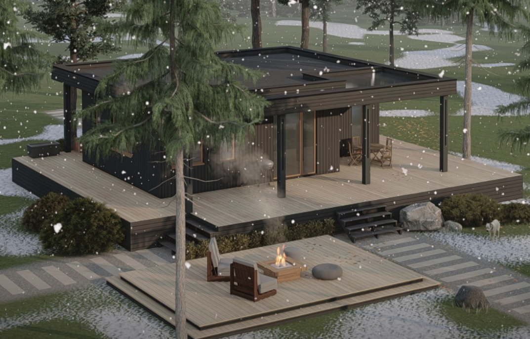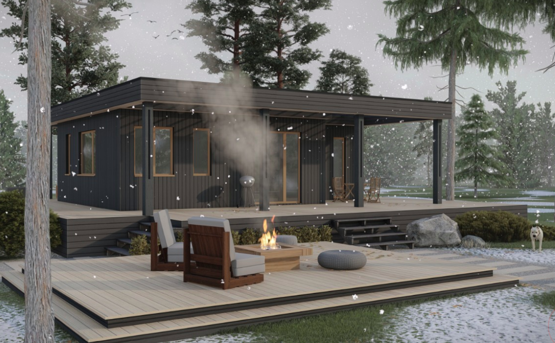 Высота потолков 2,8м, эффективное утепление (150мм вертикального утепления в стенах и 200мм в полу + 50мм хлопкового утеплителя URSA Pureone); все коммуникации прокладывают внутри теплого контура дома, а для ввода воды в дом используют греющий кабель; растущий дом - можно нарастить жилую площадь тогда, когда возникнет в этом потребность; два цветовых решения фасада; дом сдается с отделкой (два варианта исполнения на выбор).