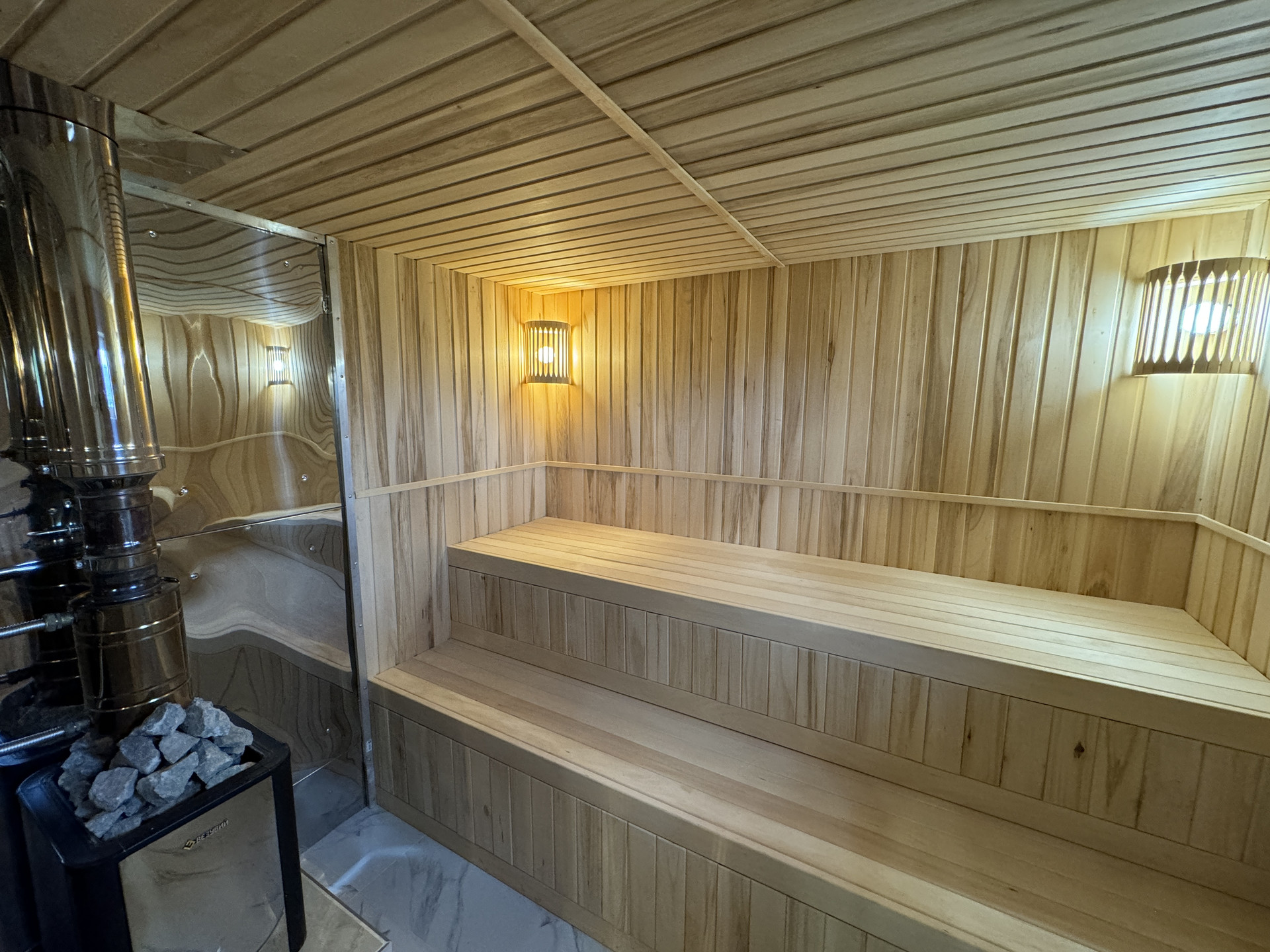 Отдельно стоящая отличная, просторная баня с зоной отдыха и душевой.