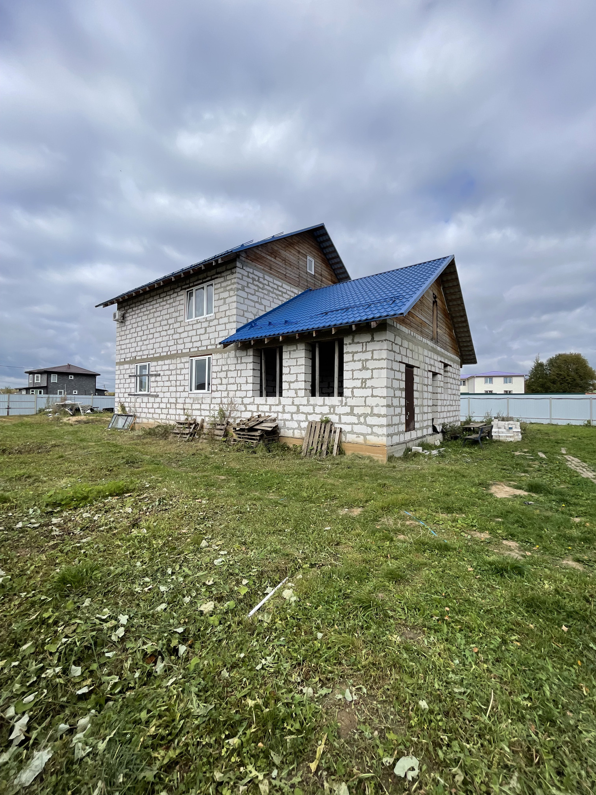 Продается жилой дом 223.7 кВ.м, на участке 13 соток. С мансардой 320 метров. Построен из газоблоков. Блоки Бонолит - это газобетон высокого качества пористой структуры с равномерно размещенными сферическими порами диаметром от 0,5 до 3 мм. Легкий вес, долговечность, повышенная звукоизоляция и низкая теплопроводность - часть преимуществ материала, способствовавших его популяризации. По своим свойствам материал превосходит природный камень и бетон. Фундамент монолитный, толщина 400, глубина 180. Строили для себя. Окна Рехау. Коммуникации: вода - центральная скважина, заведена в дом и разведена, канализация - септик, электричество 15 кВт. разведено по всему дому, Газ проходит по границе участка. Выполнена отделка white box, стены оштукатурены и готовы к финишной отделке. Поможем с дизайн проектом, есть смета на оставшиеся работы. Осталось выбрать ваш стиль дома внутри и снаружи. Поселок полностью жилой, обустроенный, въезд закрыт, асфальтированные дороги, освещение, замечательные соседи. В пяти минутах магазин и автобусная остановка. До ж/д станции пять минут дороги.