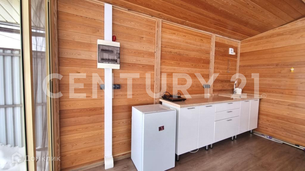Гостевой дом 80 кв. м с застекленной верандой.  Дом каркасный, использовались качественные материалы. Отделан с наружи и внутри лиственницей. Фундамент ленточный. Санузел совмещенный.  На кухне гарнитур со встроенной техникой. Кварцвиниловый пол во всем доме.  Отопление в гостевом доме электрическое.  Дом готовый для круглогодичного проживания. На улице дополнительный уличный санузел со всеми удобствами.