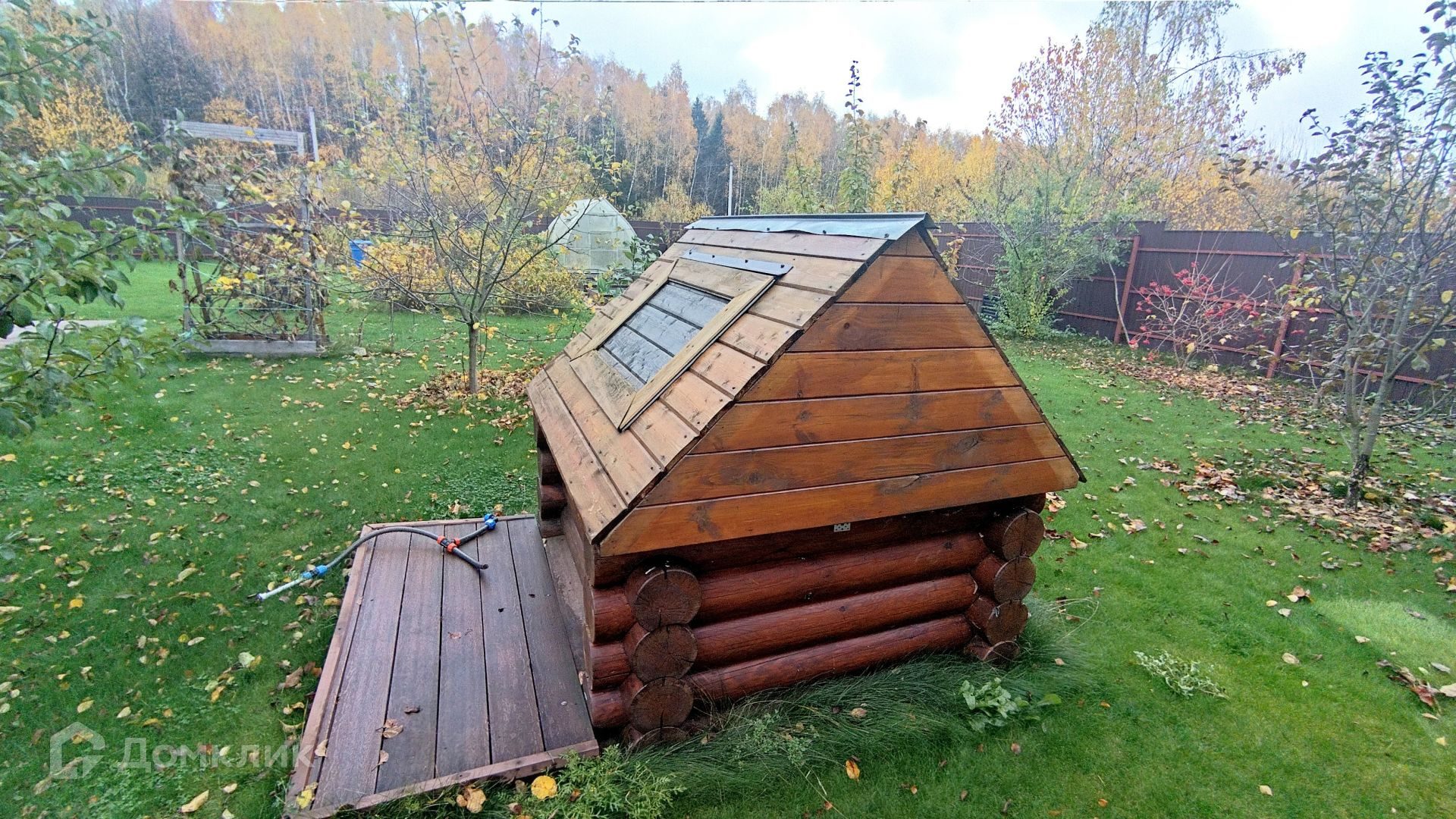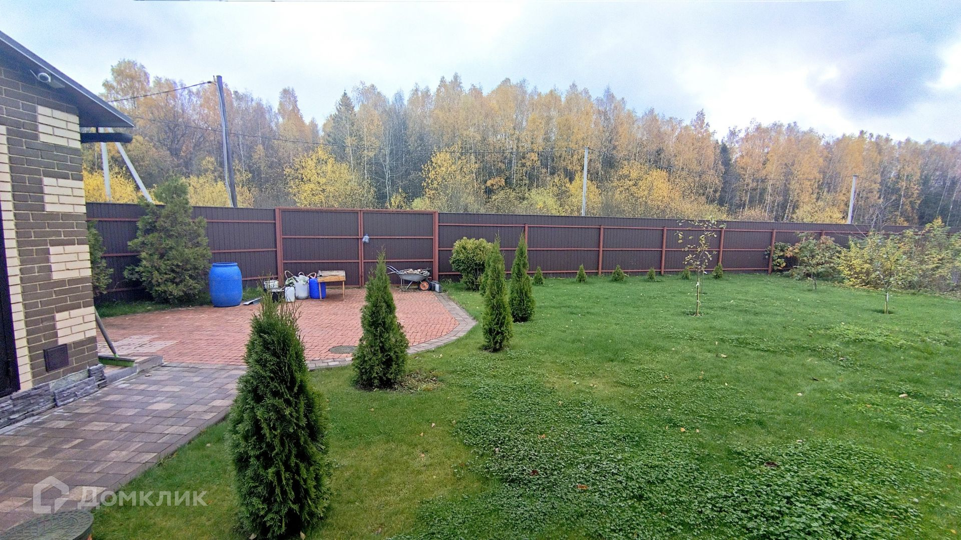 Участок огорожен, есть въездные ворота, парковка, гараж с погребом.