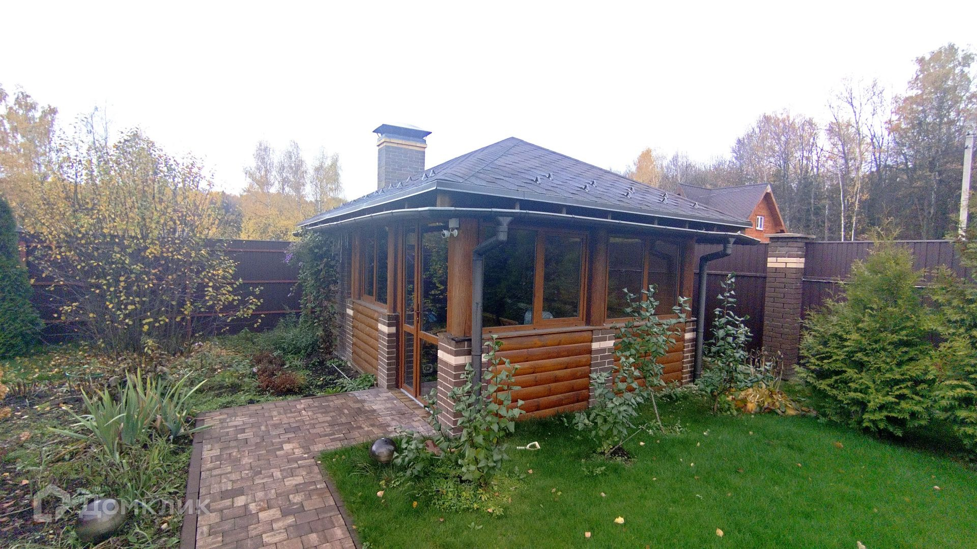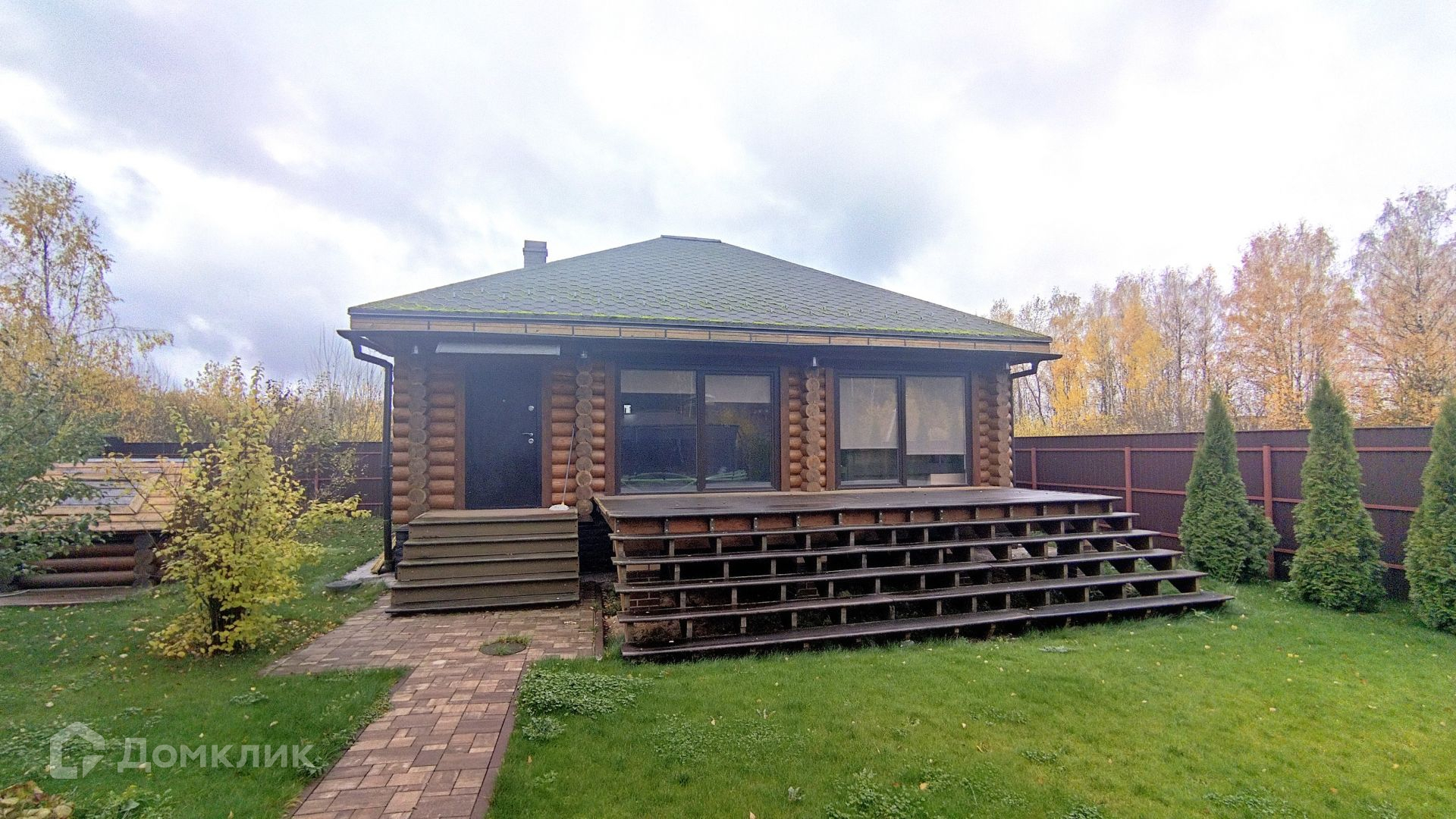 Дом площадью 185 кв.м, построен из оцилиндрованного бревна.
