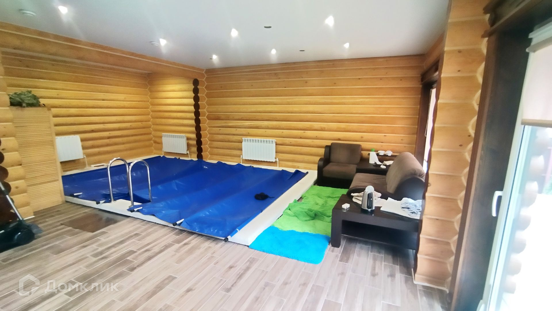 - прихожая, основной зал размером 50 кв/м с установленным в нем бассейном 3мх5м с подогревом ((от центрального газа), противотоком, системой фильтрации), туалет, душевая, парная с кирпичной печью на дровах.