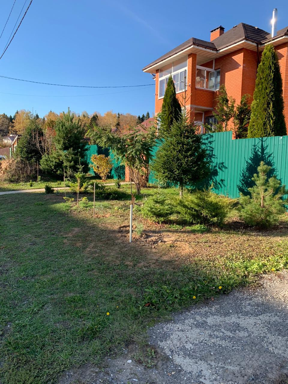 Участок высокий, сухой, правильной формы, новый газон, обустроена система дренажа, отвод воды с кровли.