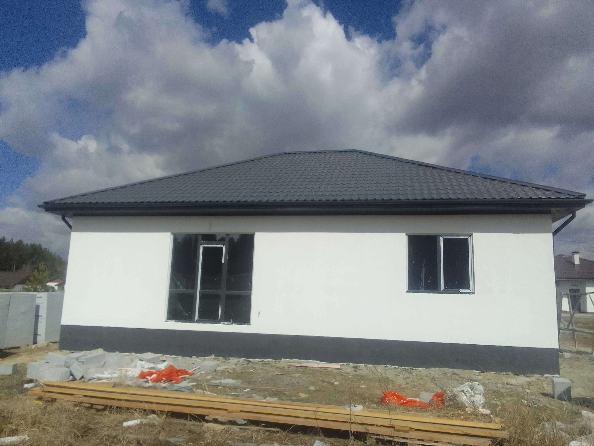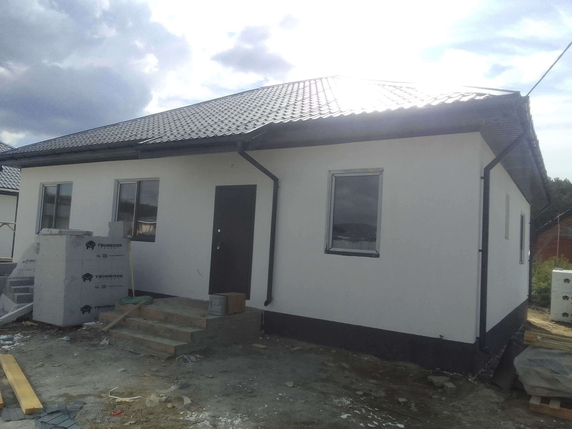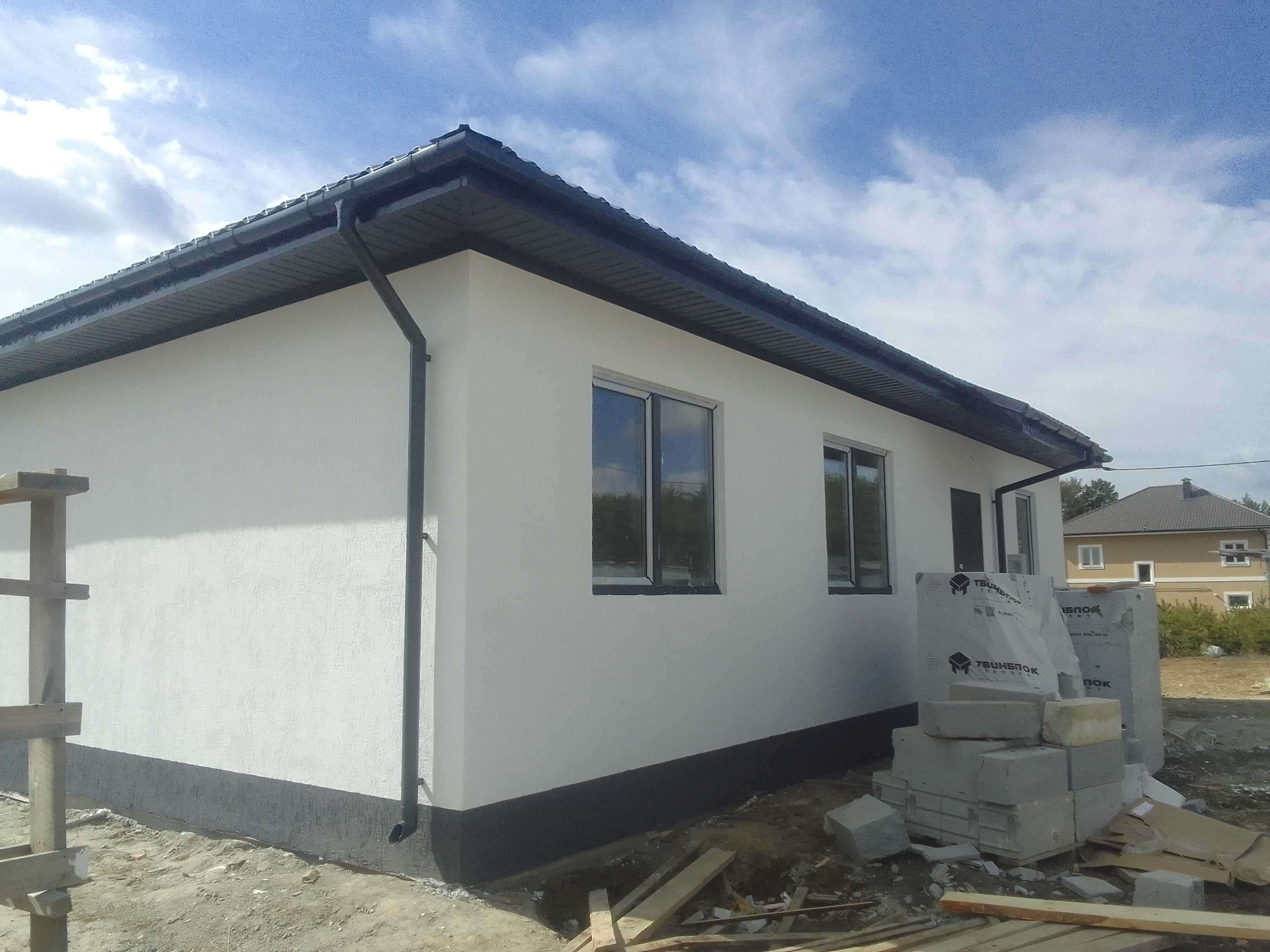 Стены: газоблок 300+фасадный утеплитель+ штукатурка "Короед"