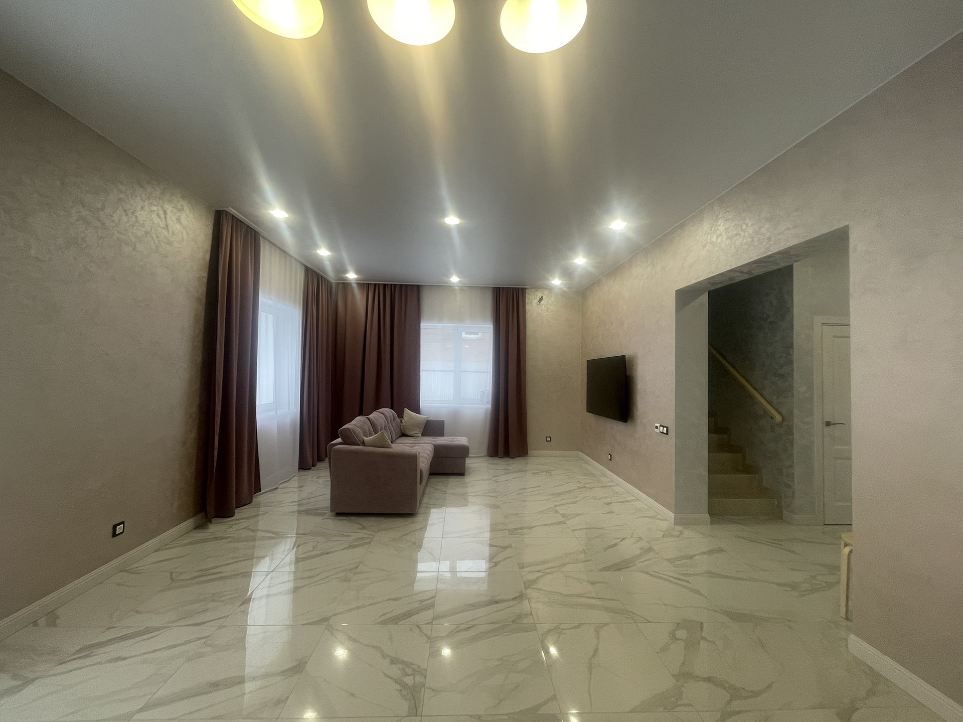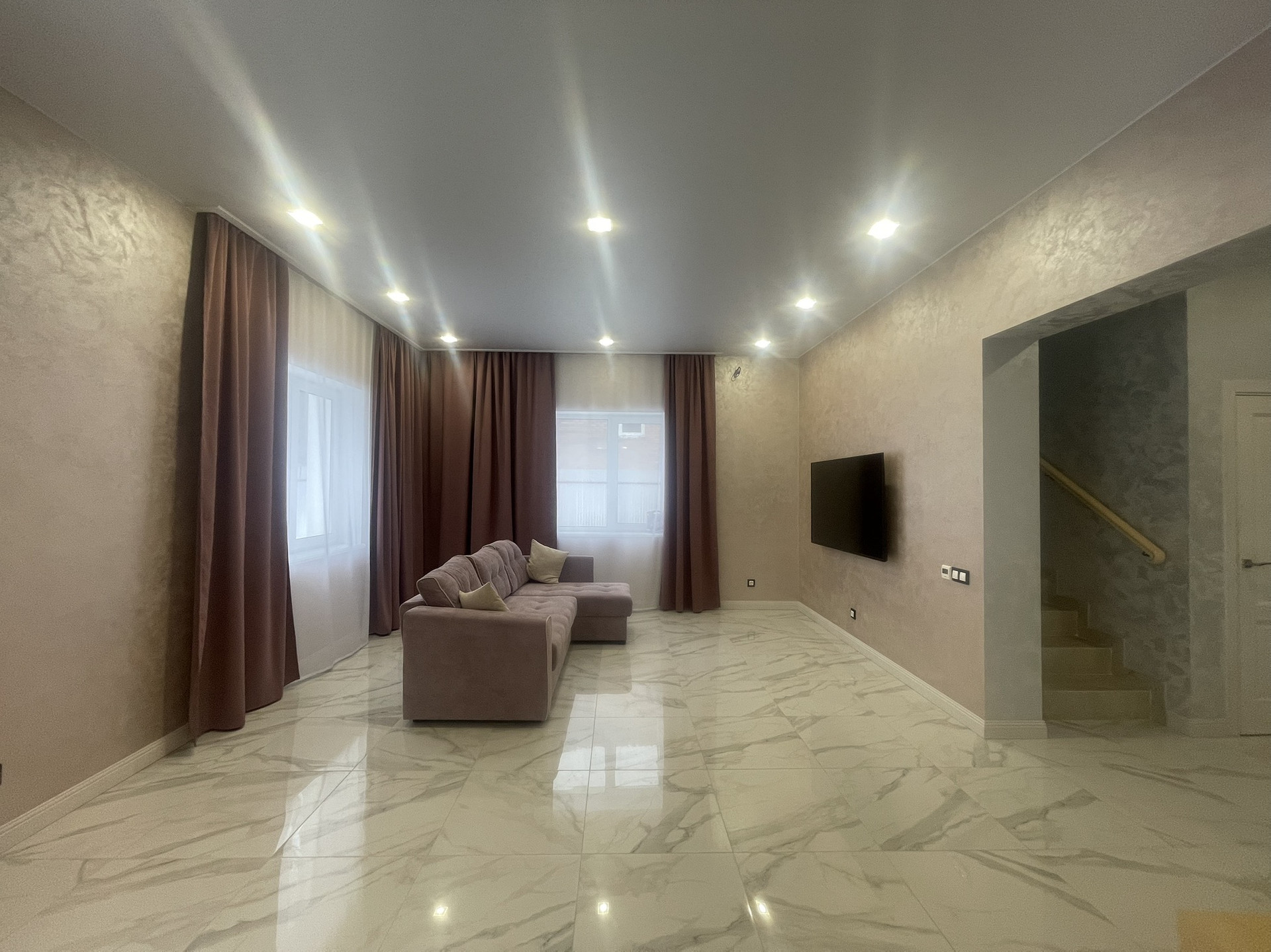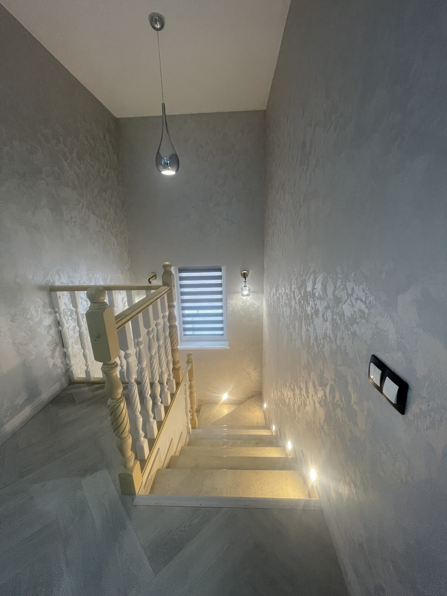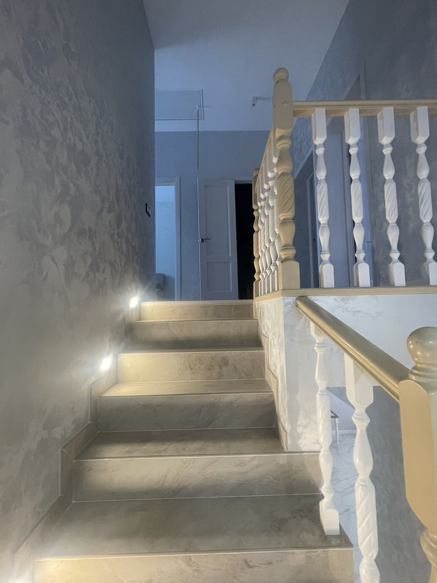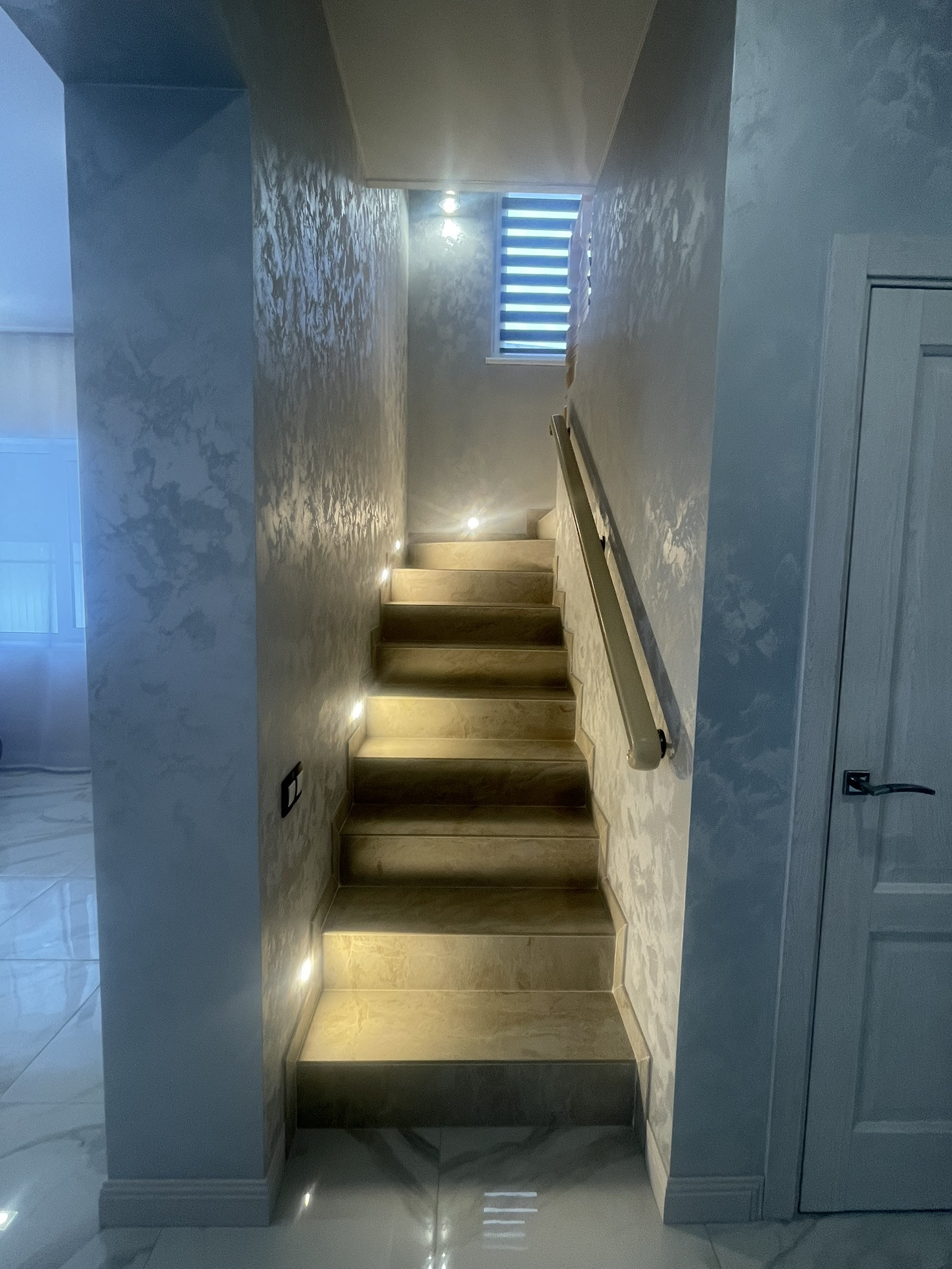 Лестница на 2 этаж имеет ночное освещение.