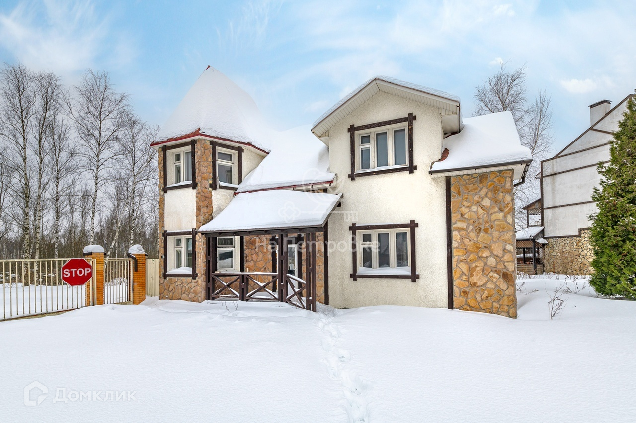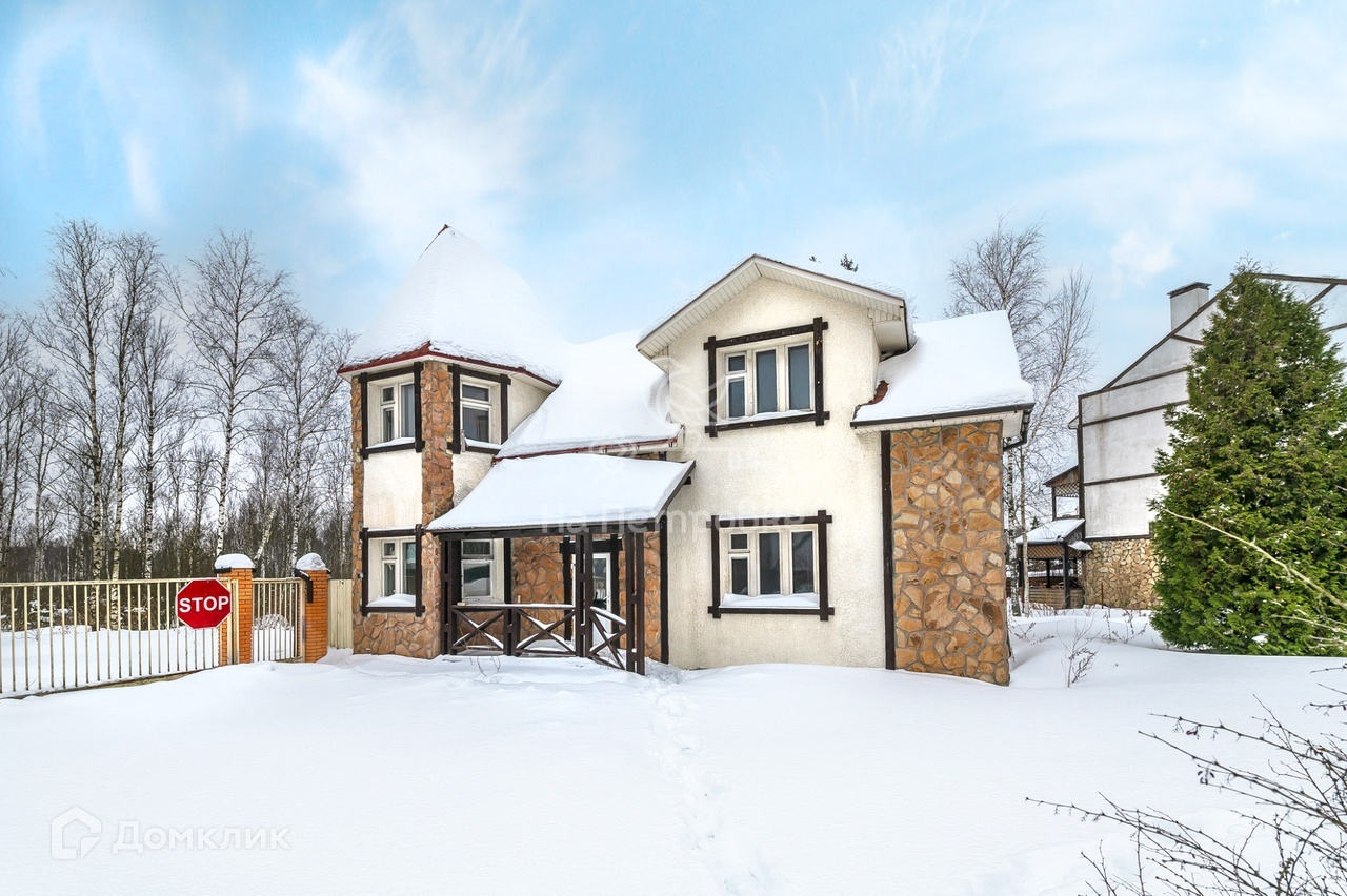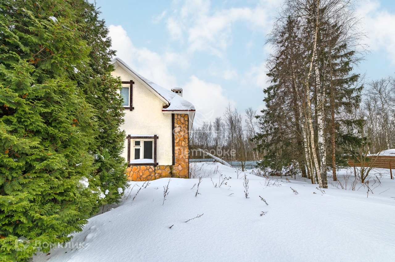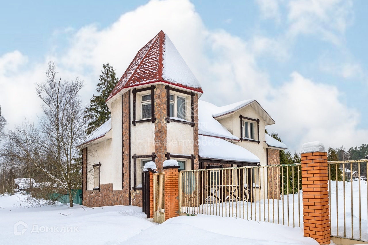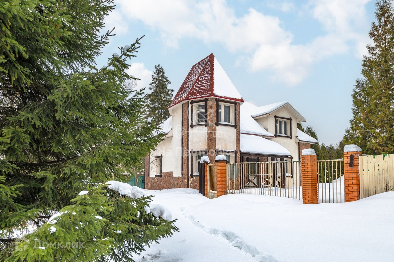 Двухэтажный дом в стиле «Шале» общей площадью 157 кв.м. построен из кирпича. Фасад оштукатурен, отделан состаренным деревом и природным камнем. Фундамент свайный. Перед домом -небольшая веранда. Нужен ремонт.