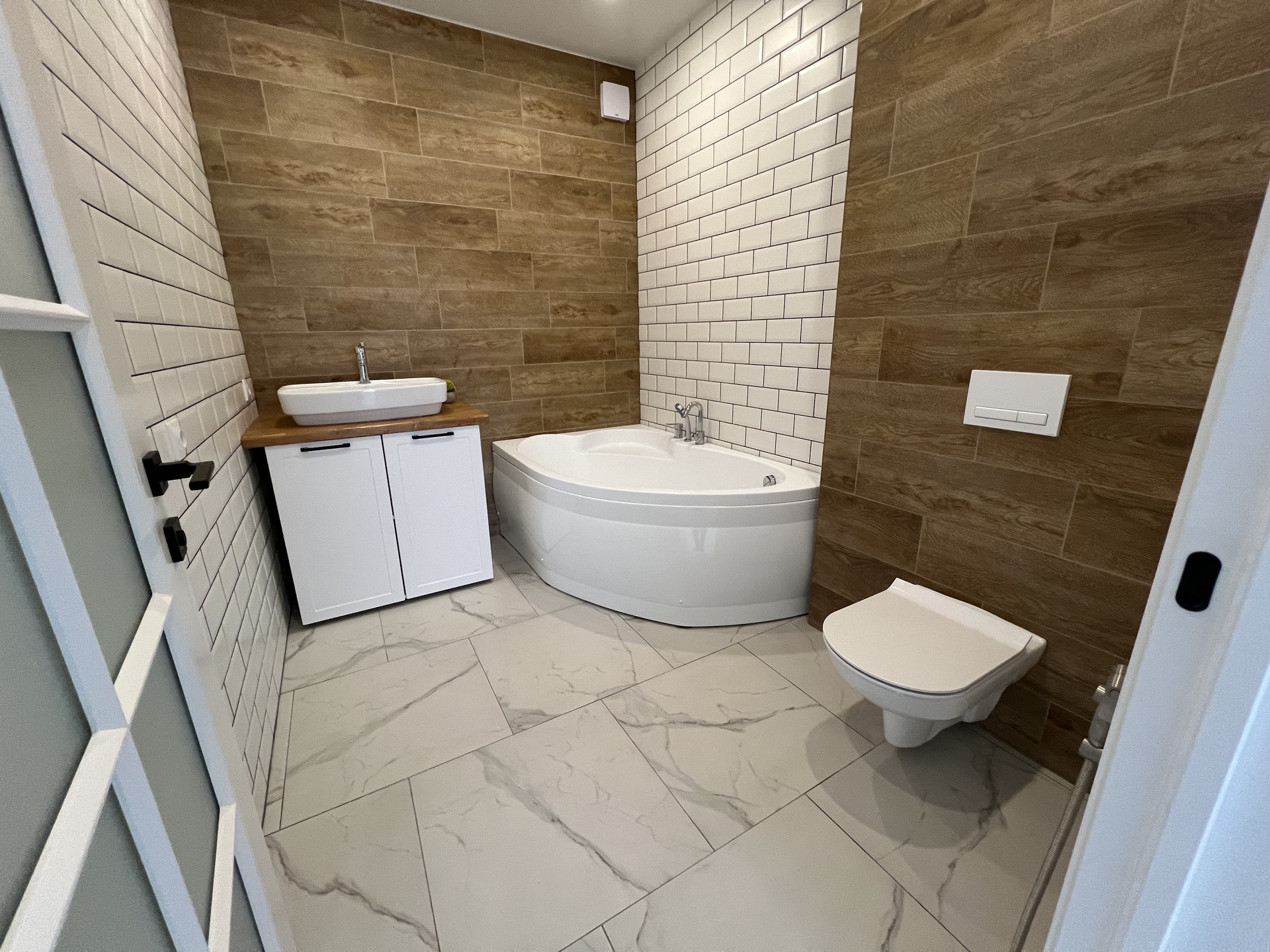 Отопление-тёплые водяные полы и внутрипольные конвекторы функционируют от электрокотла.Поселок газифицирован, газовый выход подведен к дому.В доме три жилых комнаты,санузел, кухня-гостиная(open space),гардеробная,холл и прихожая.