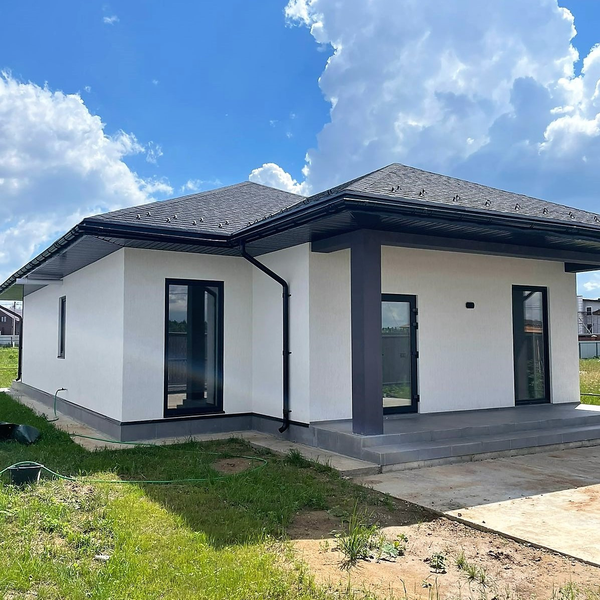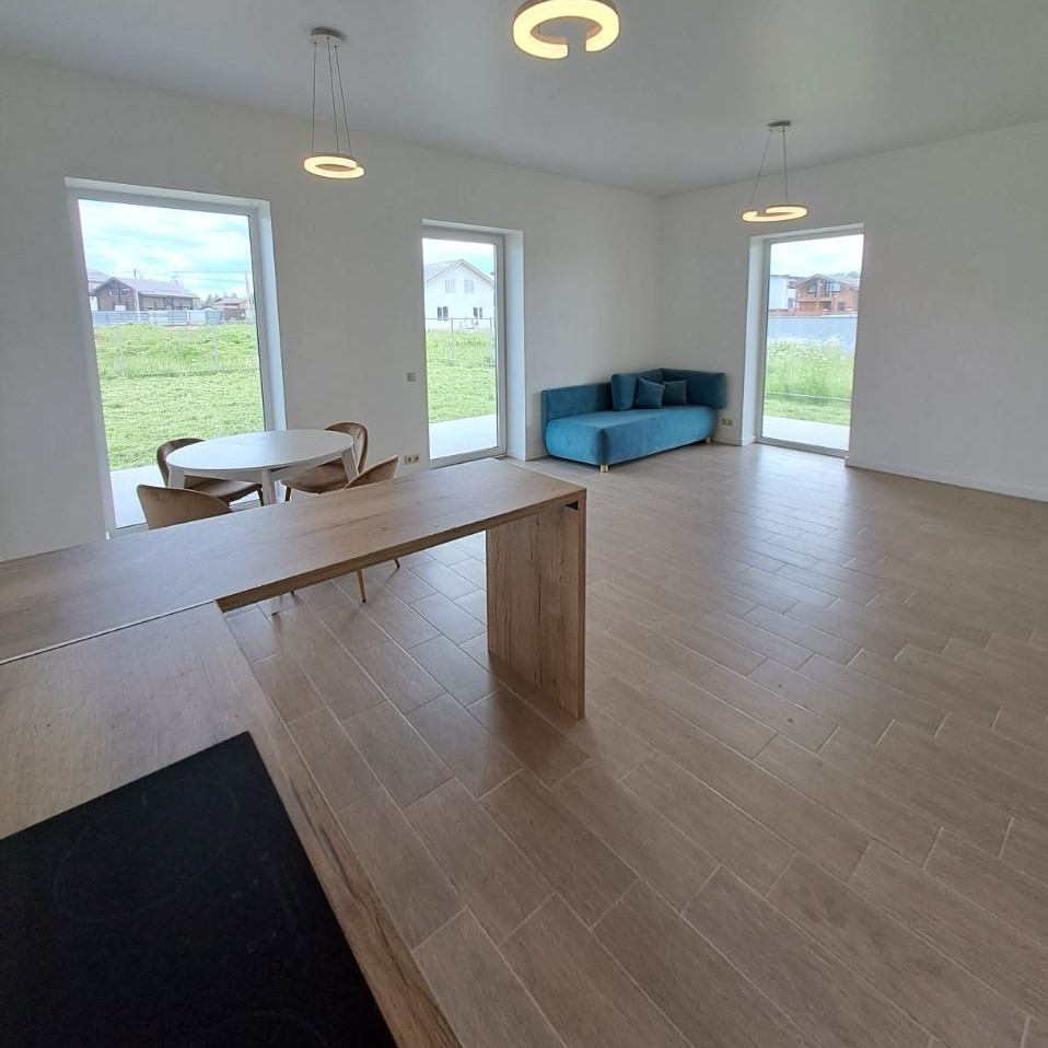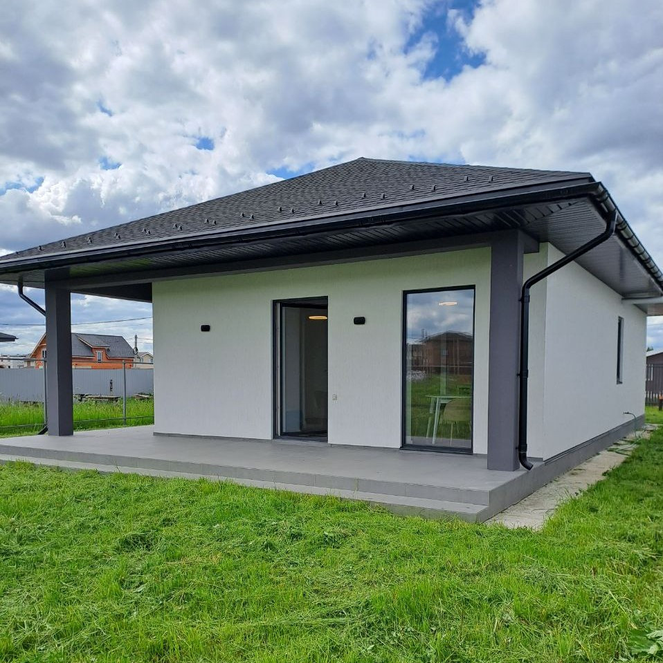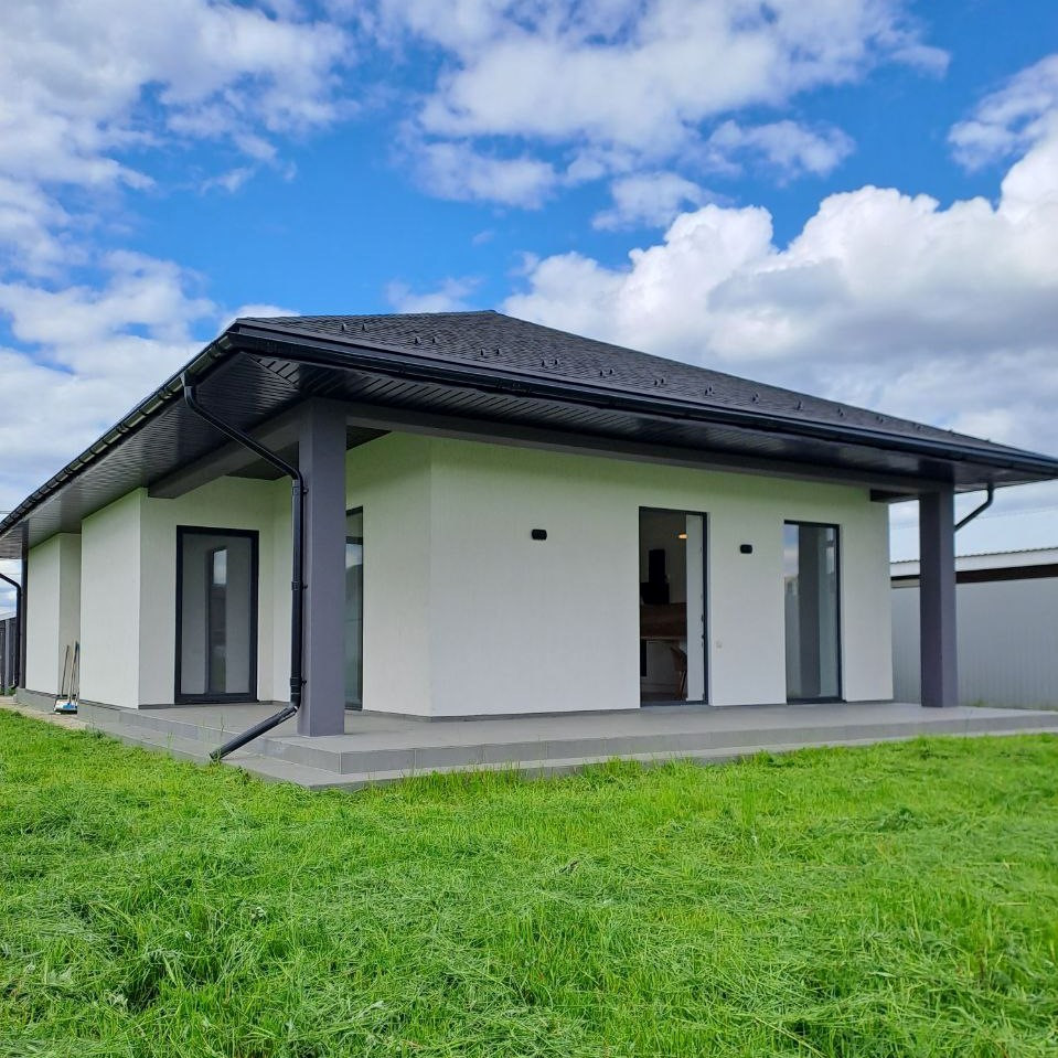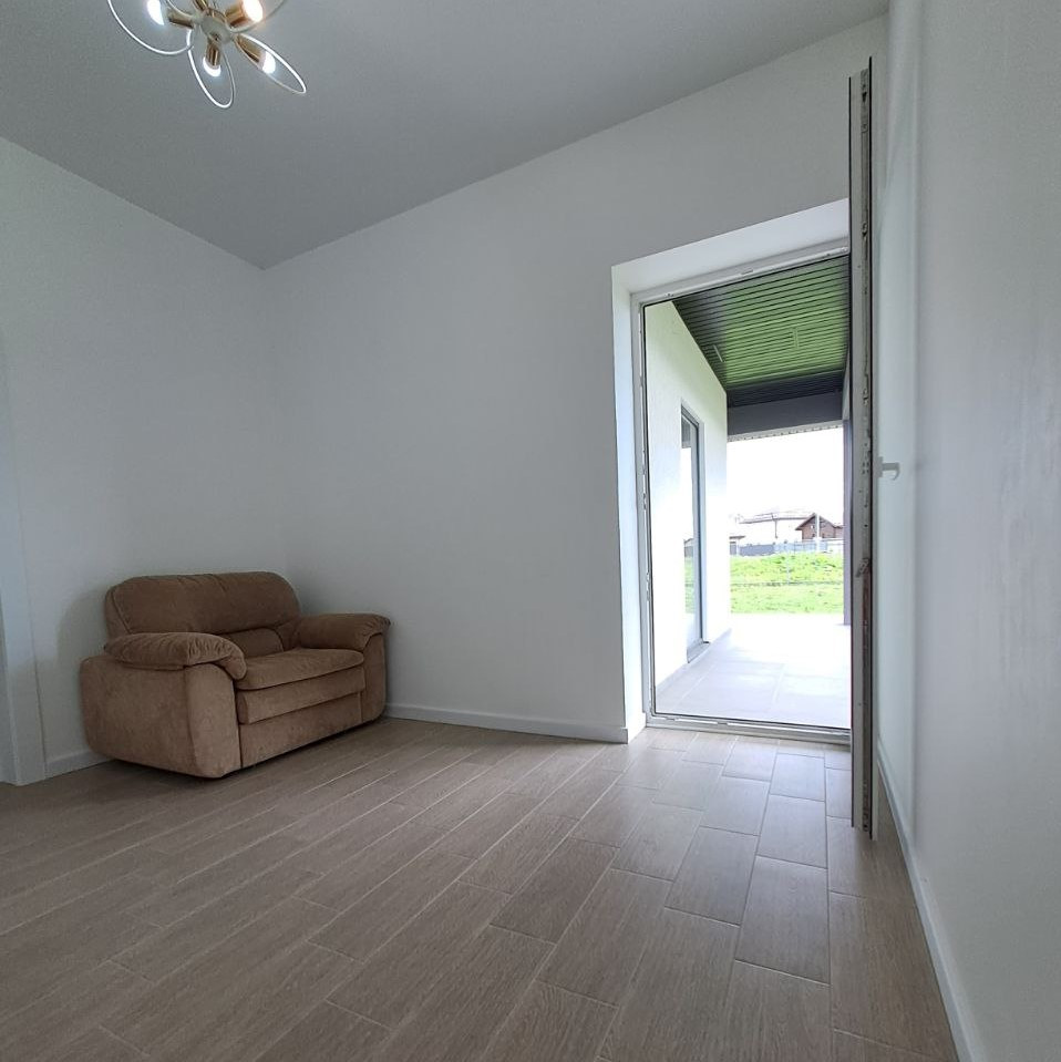 Новый дом, возможна прописка. Просторная гостиная + кухня с выходом на крытую террасу, на которой удобно организовывать отдых и прием гостей, 3 спальни с панорамными окнами и своим выходом на участок, ванная комната с большим окном, котельная, холл.