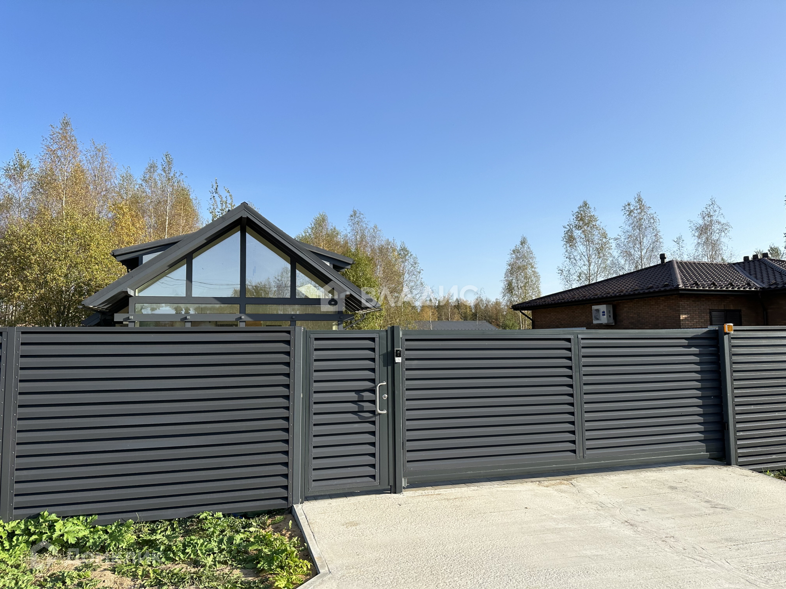 Брусчатка на отмостке и площадке под автомобили. В доме подключен газ. Забор выполнен фирмой grandline.