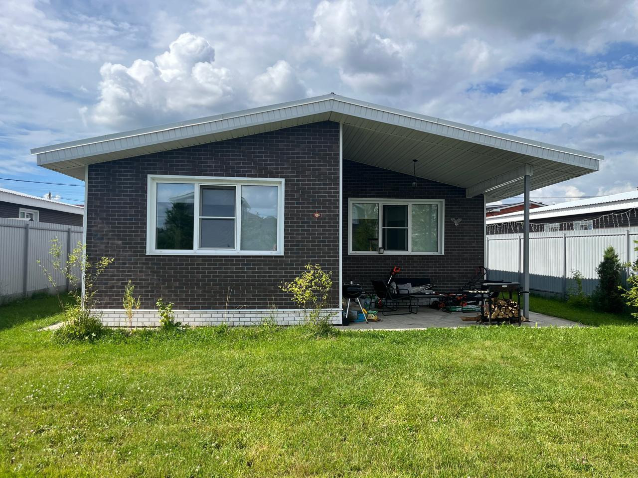 Современный одноэтажный дом с мебелью, готовый к проживанию, на  ухоженном участке 6 соток.  Центральные коммуникации. Рядом школы, сады, магазины, ПВЗ. Транспортная доступность по трем шоссе до Москвы плюс платные дороги.