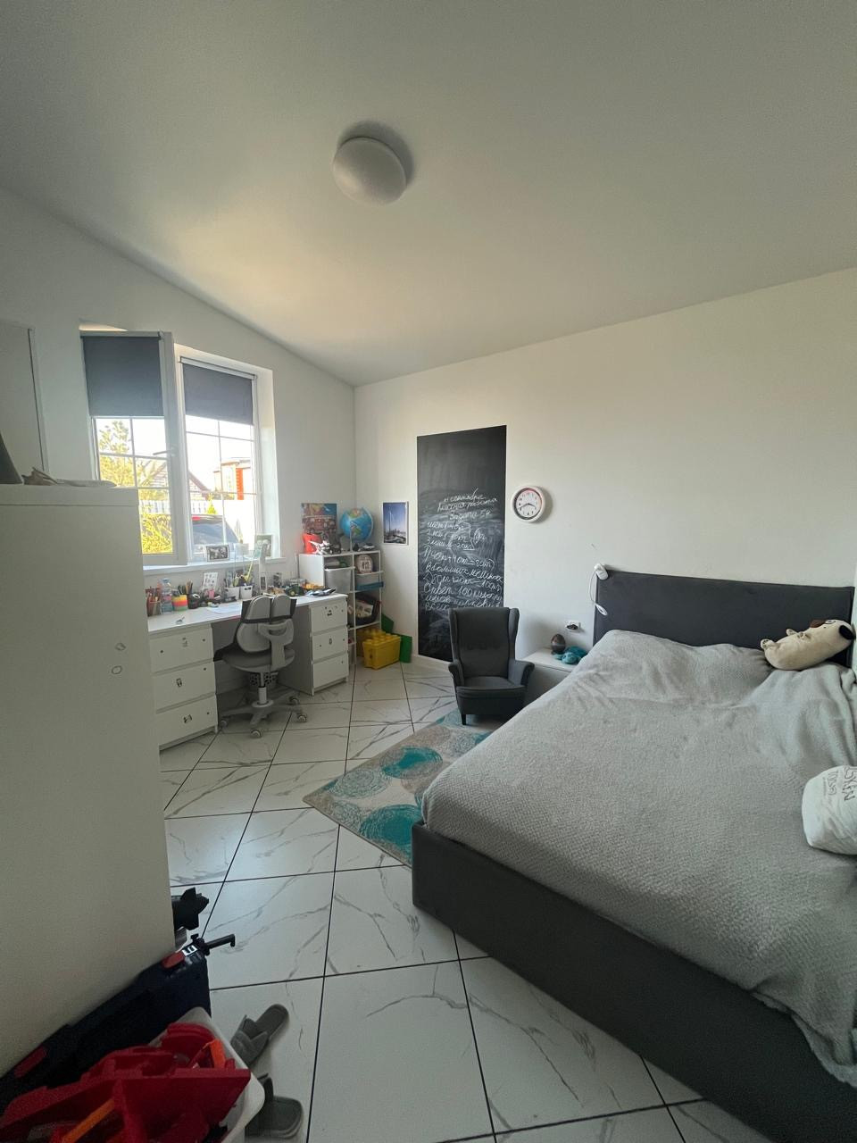 3 изолированные комнаты, раздельный с/у, большая зона гостиная-столовая-кухня, техническое помещение, веранда, много зелени и своя детская площадка на участке. Своя парковка. Электрические ворота. Сарайчик для техники и велосипедов