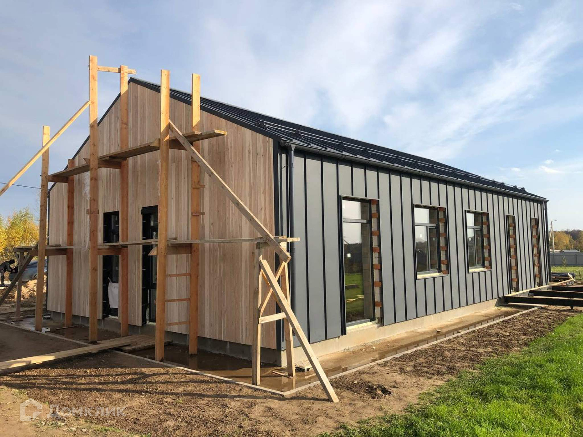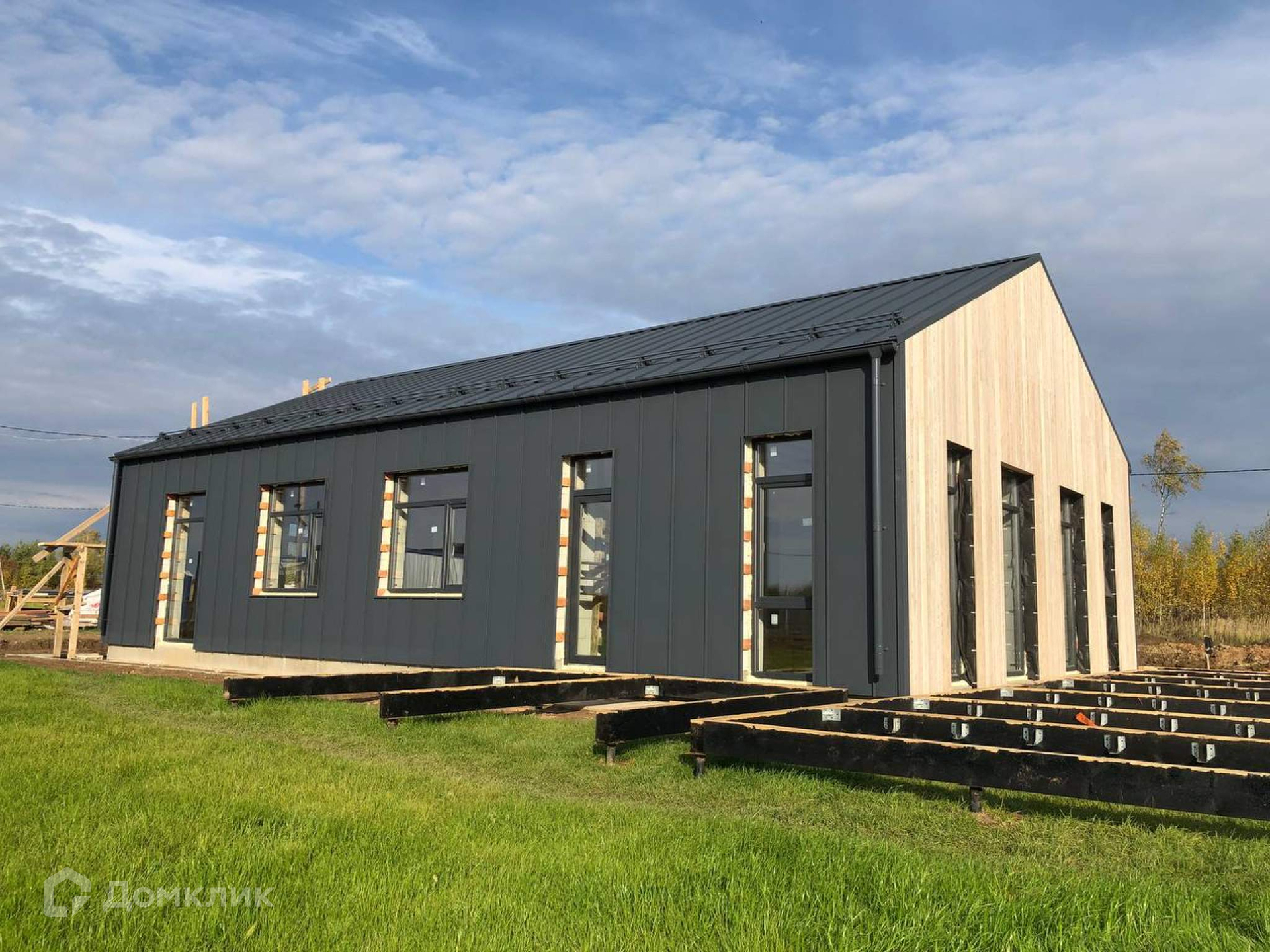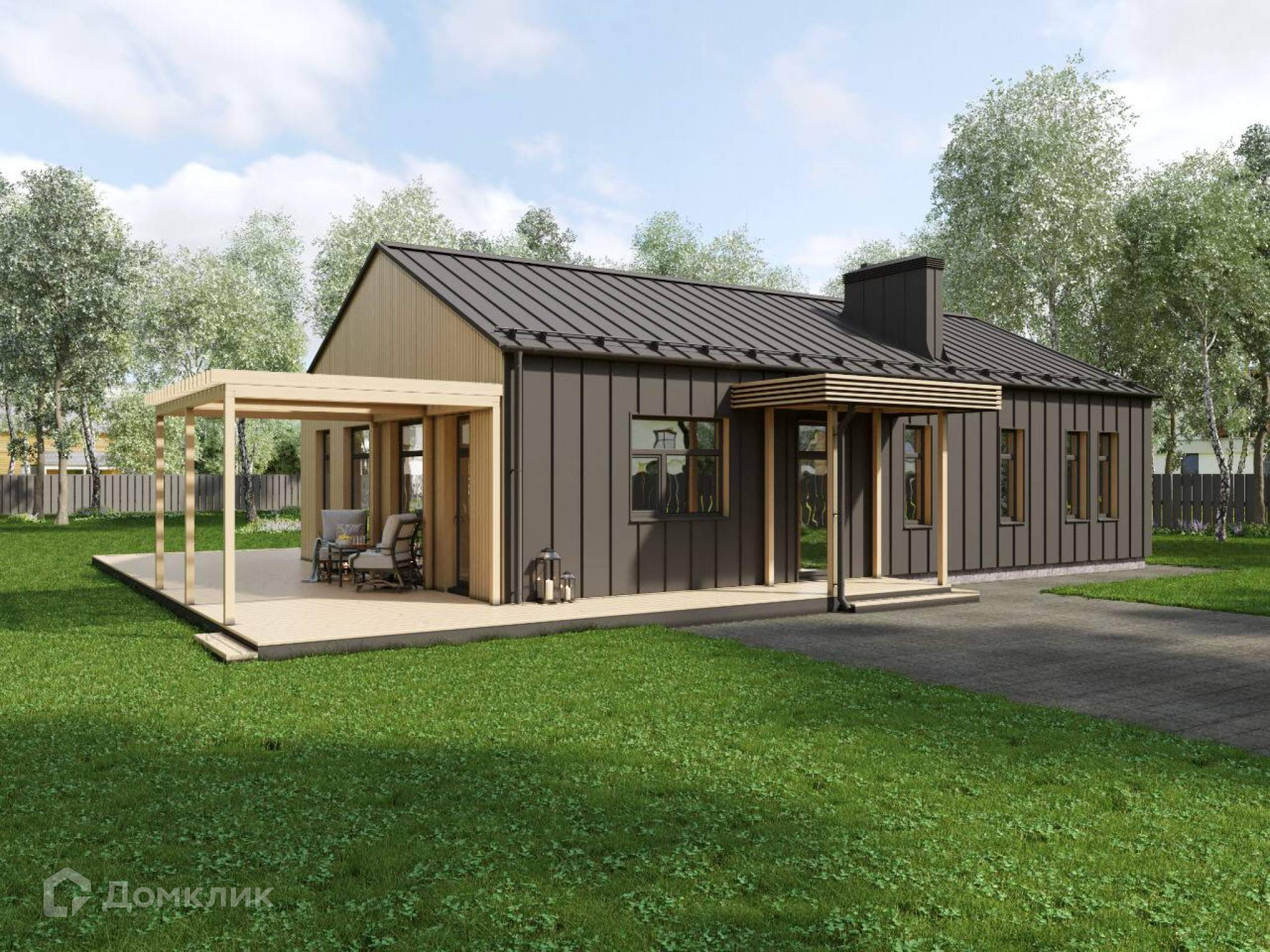 Фасад дома будет выполнен из планкена (лиственница, обработанная маслом) и фальцевой кровлей кликфальц Pro производителя GrandLine.