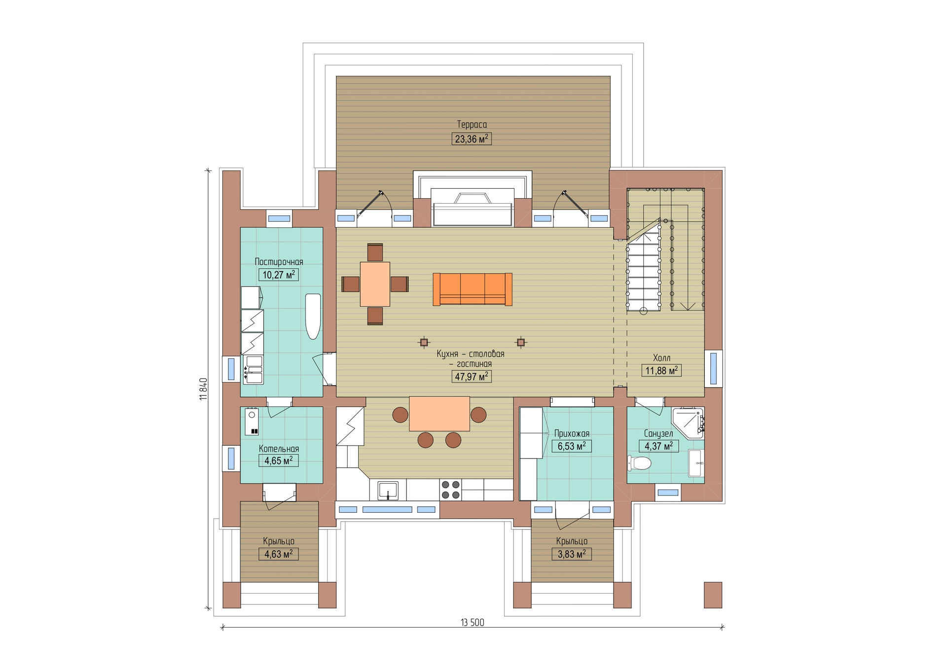 Площадь террас - 39 м2.