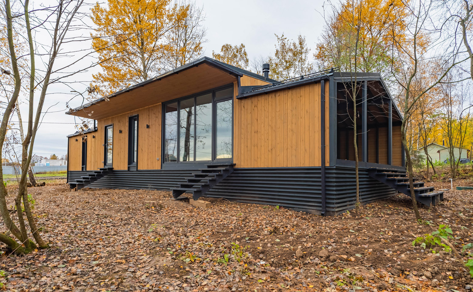Продается одноэтажные каркасные коттеджи построенные в едином архитектурном стиле. В оформлении фасадов используется дерево.