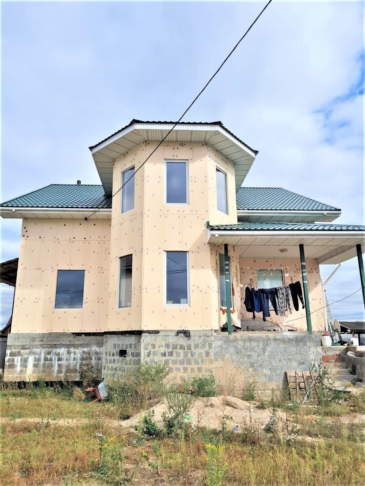 Дом из газобетонных блоков, межэтажные перекрытия железобетонные плиты, кровля -металлочерепица. Трехфазное электроснабжение, водяное отопление, твердотопливный котел, на горячую воду установлен бойлер, индивидуальная скважина и колодец на пять колец, канализация, интернет, спутниковое ТВ, магистральный газ по границе.