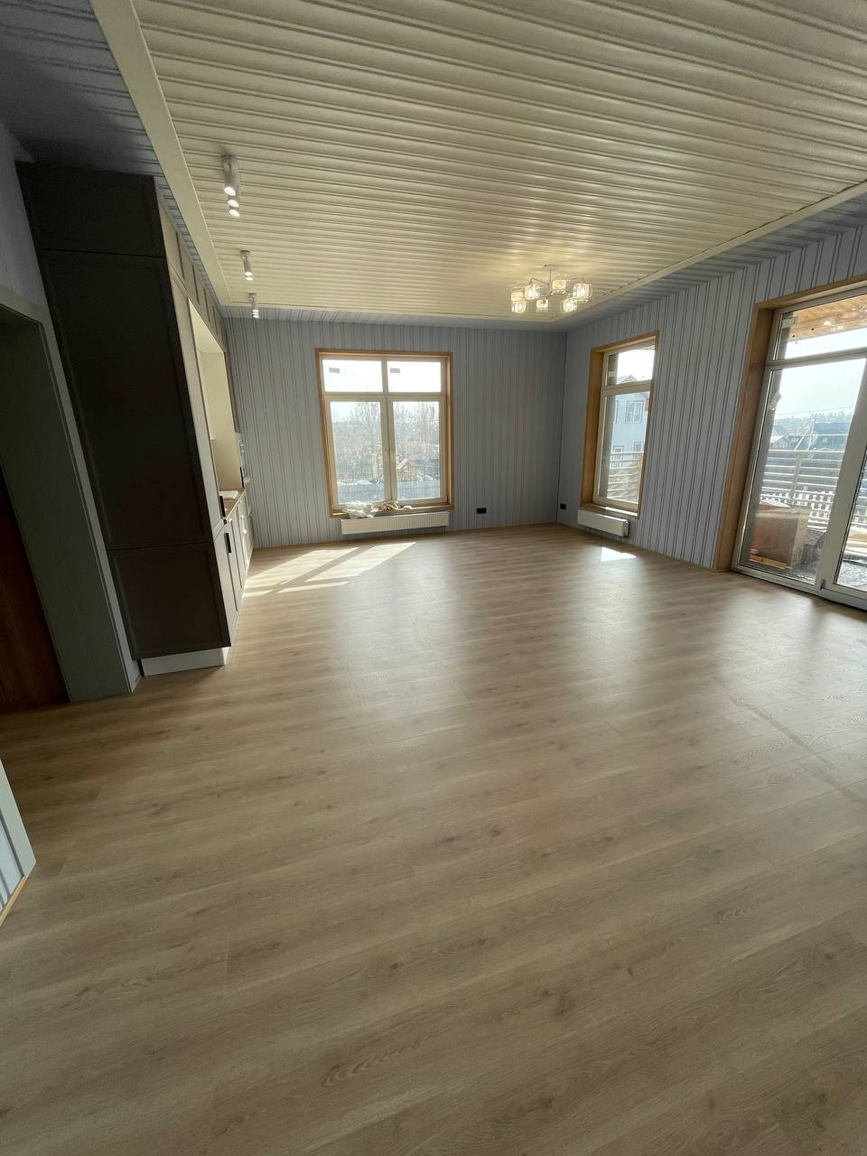 В доме полностью сделан чистовой ремонт внутри, на полу износостойкий ламинат.