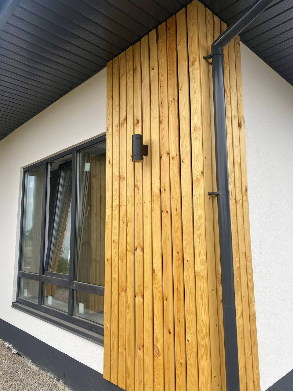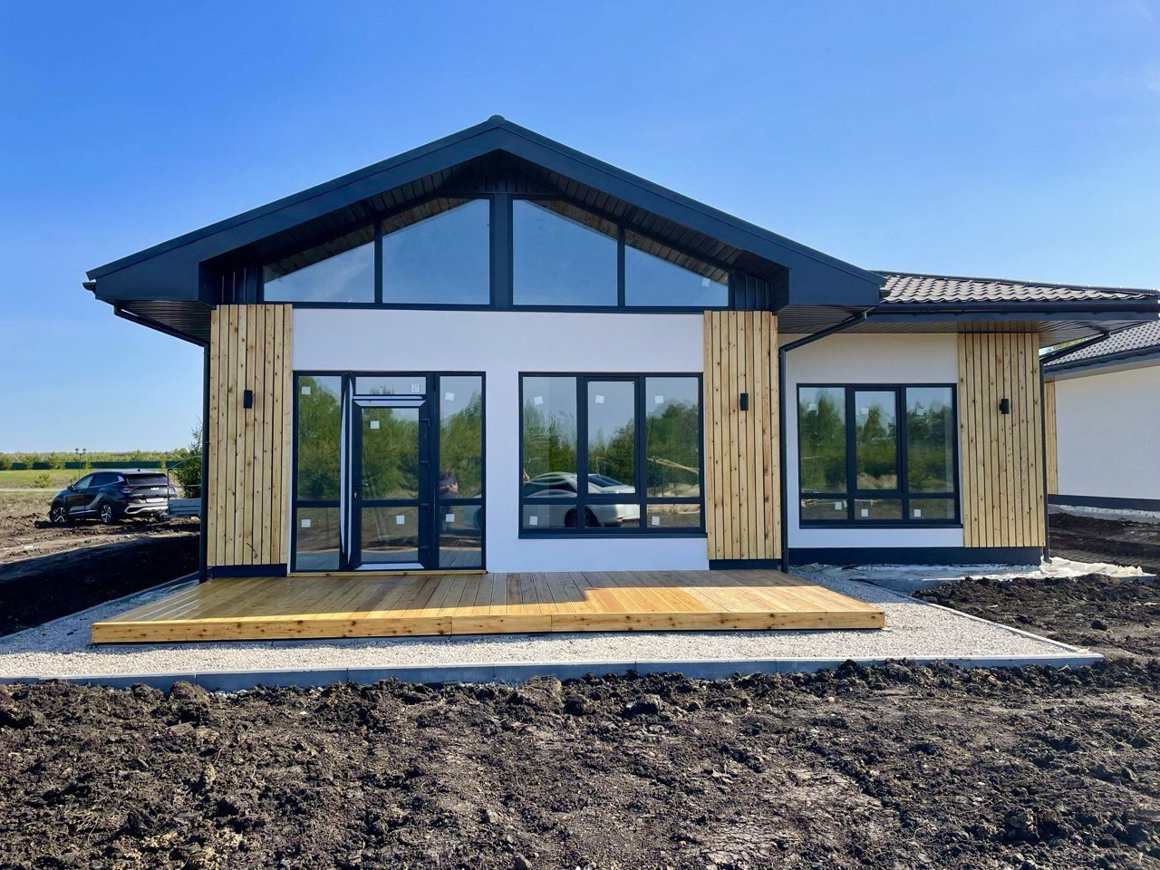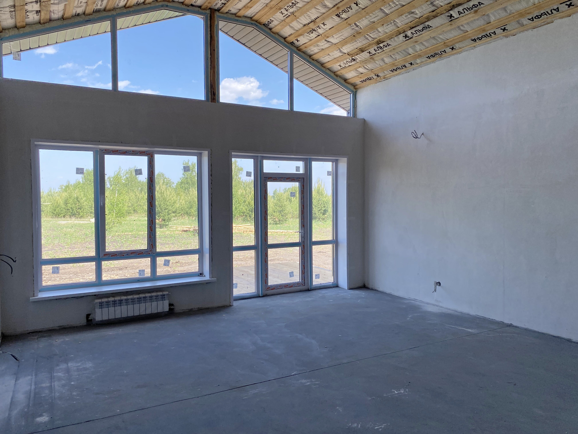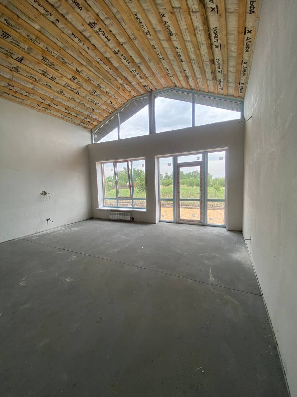 В доме расположилась просторная кухня-гостиная со вторым светом и с выходом на большую террасу, 3 спальни, большой санузел и котельная.