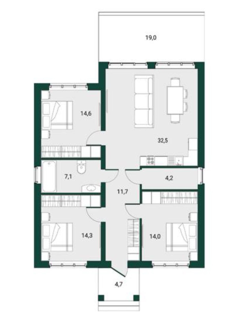 Общая площадь 125 м2