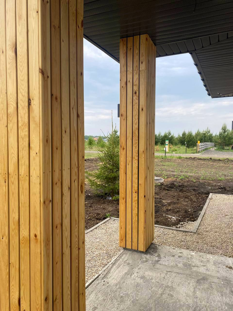 -Предусмотрена без крыши (винтовые сваи, доска террасная лиственница вельвет)