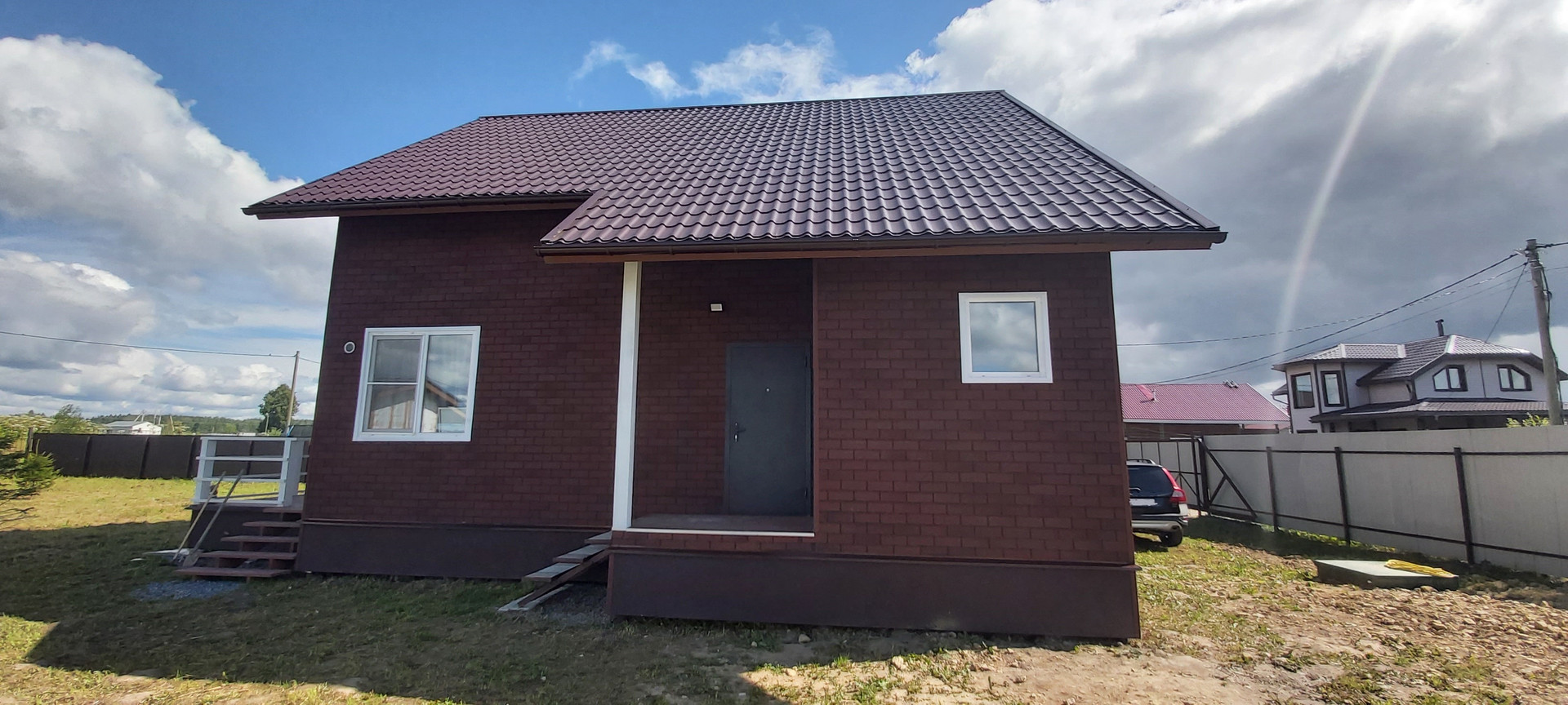 - материал стен сип панели -обшиты гибкой фасадной плиткой;