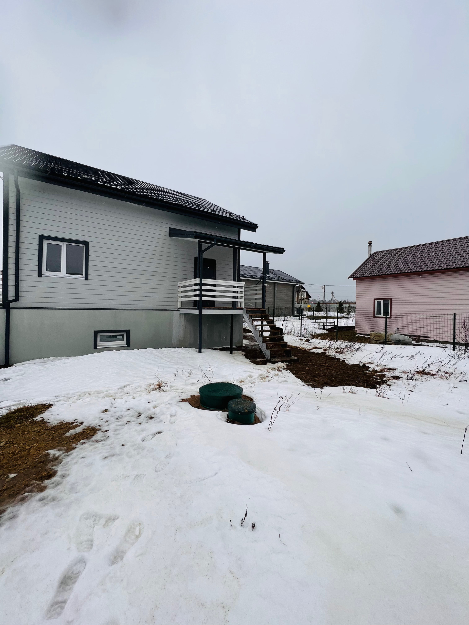 Скважина в цокольном этаже, подключена - водой можно пользоваться.