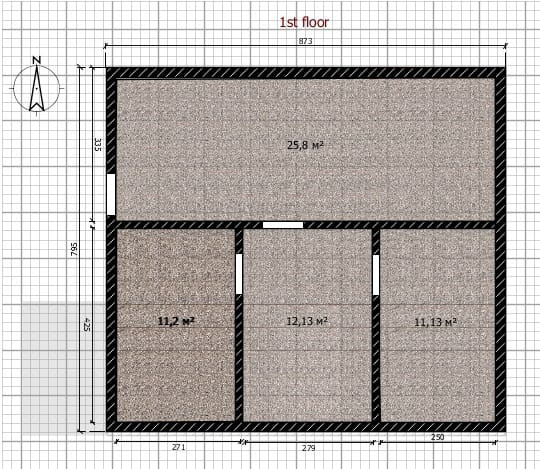 Второй и третий этаж каркасные.