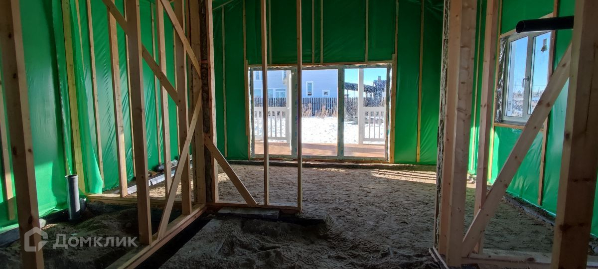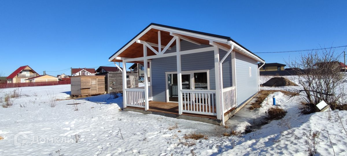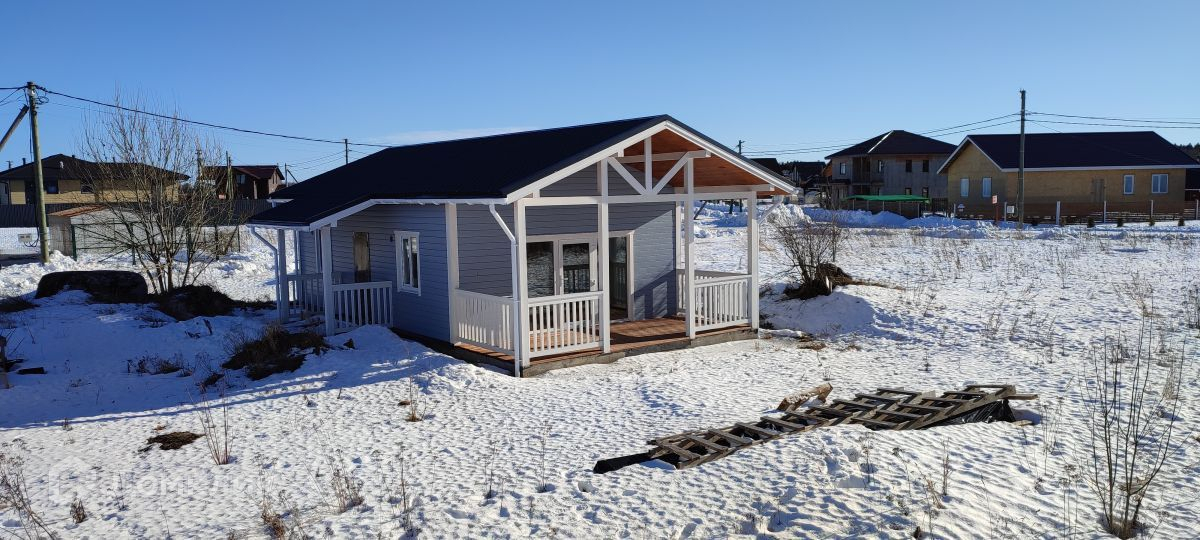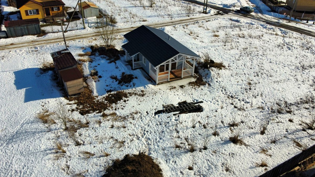 Зимний дом общей площадью 69 м2, расположен на участке 9 соток. Построен по каркасной технологии с соблюдением всех норм из сухой строганной доски, каждое примыкание проклеено герметиком. Сделан надежный бетонный ленточный фундамент. Фасад - имитация бруса, с покраской на заводе в 2 слоя с предварительным грунтованием. Кровля - металлочерепица  GRAND LINE. Двухкамерные энергосберегающие окна VEKA. Панорамное остекление в кухне-гостиной. Большая и светлая веранда. Высота потолков 3 м,  потолки в кухне-гостиной 4,2 м.