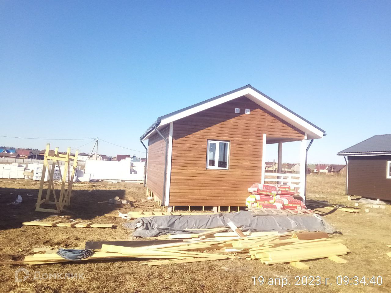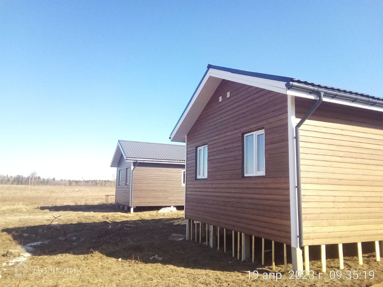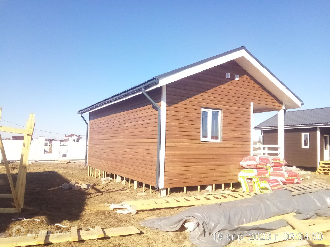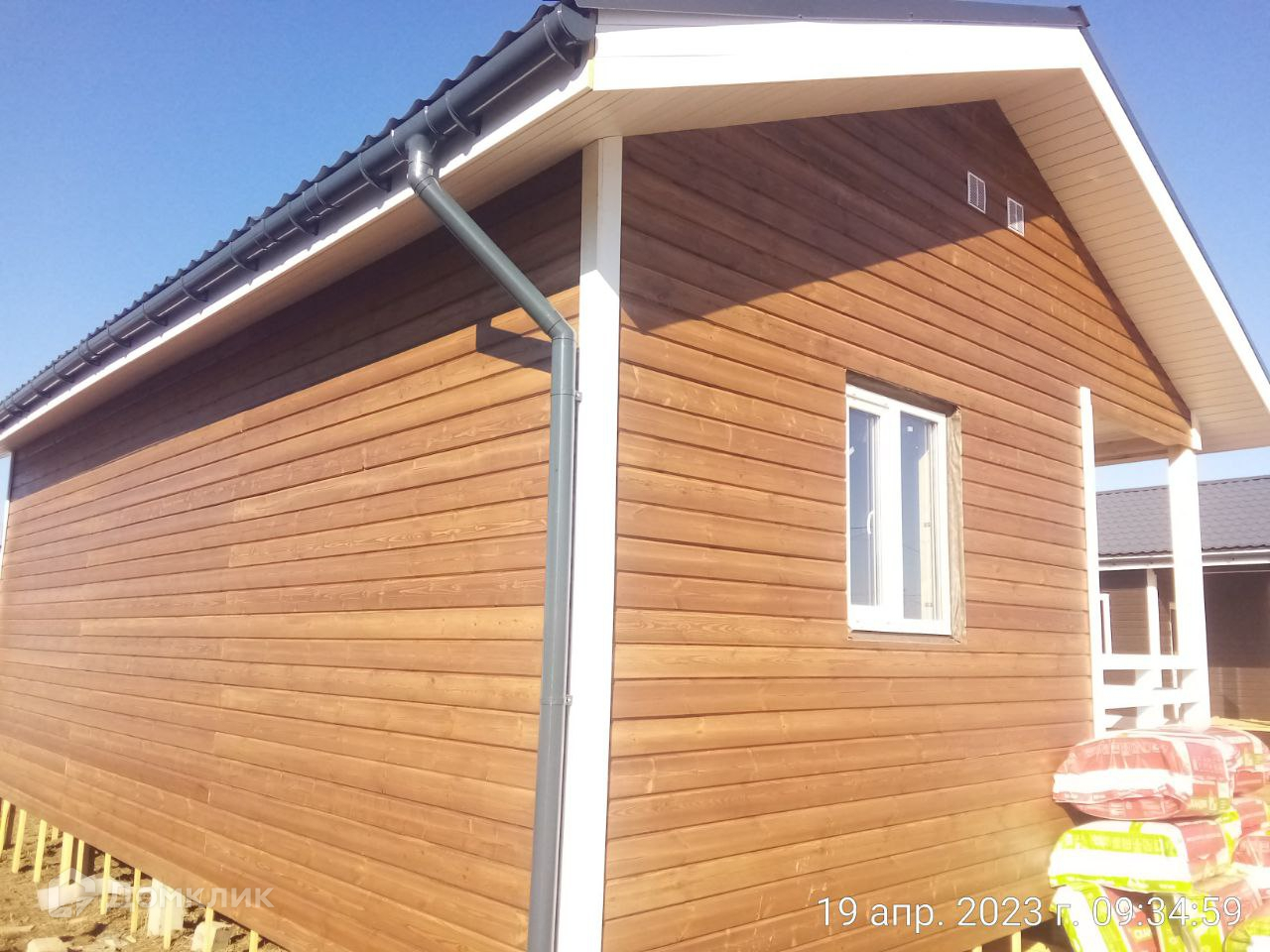 Фасад изготовлен из имитации бруса заводской окраски.