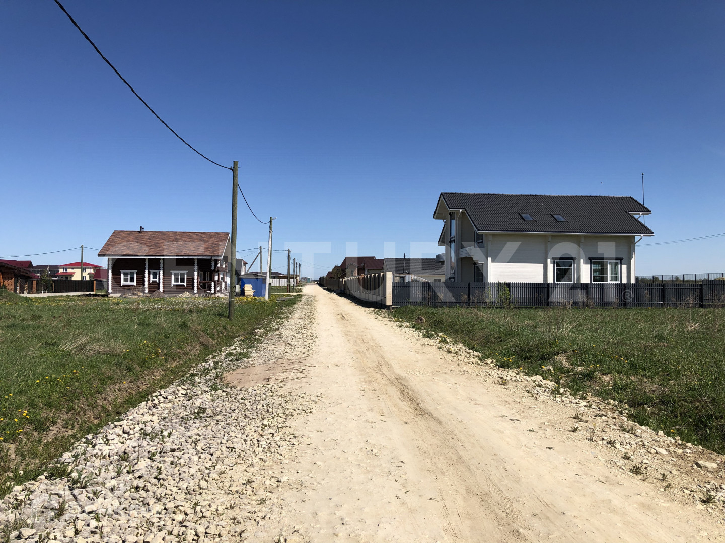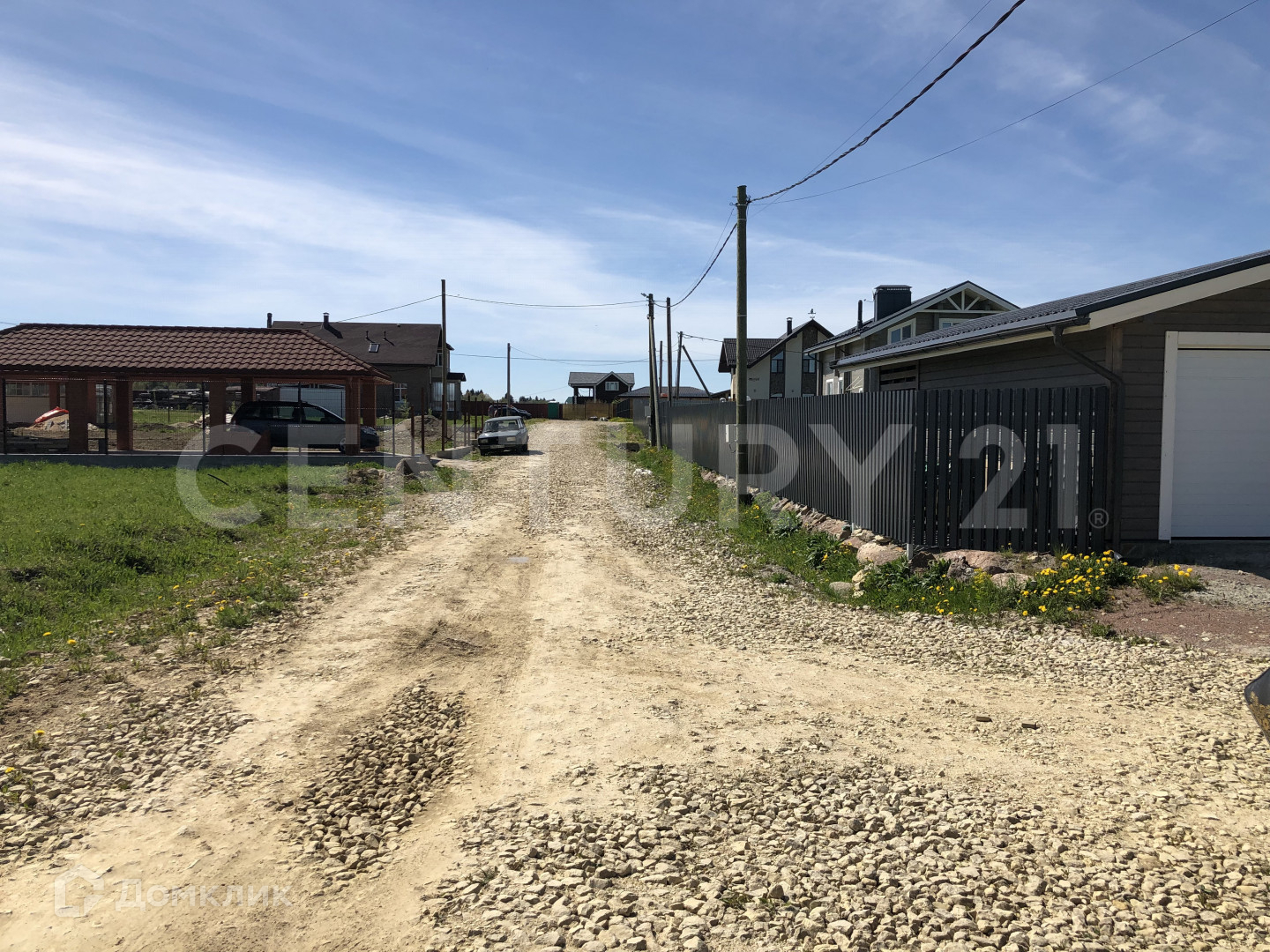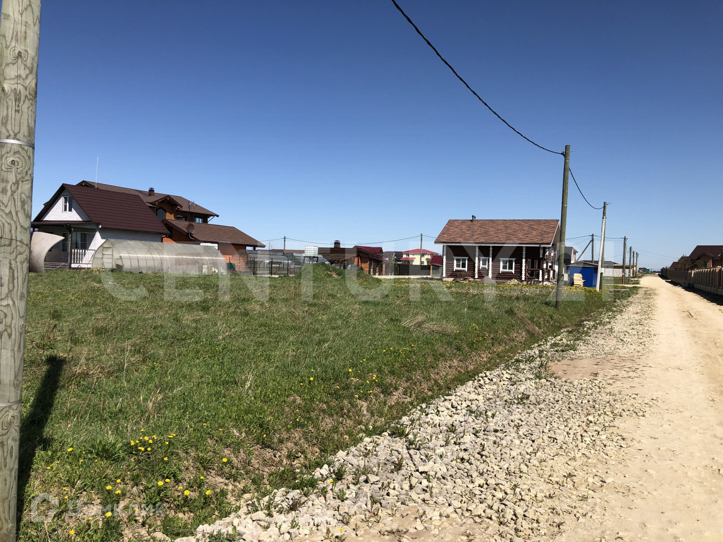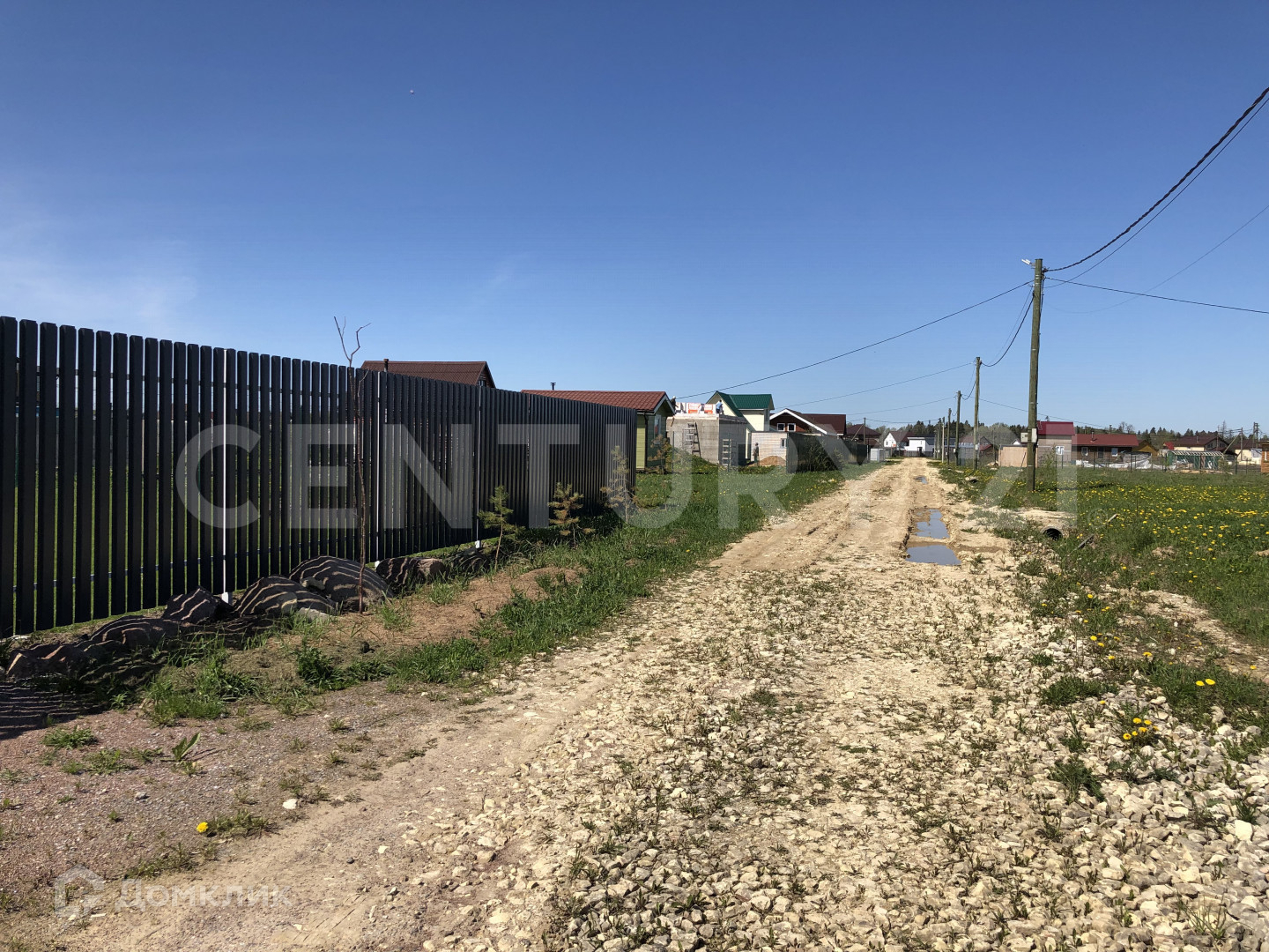 Сухой, ровный участок на краю посёлка, вид на поле и лес, выровнен и ухожен.