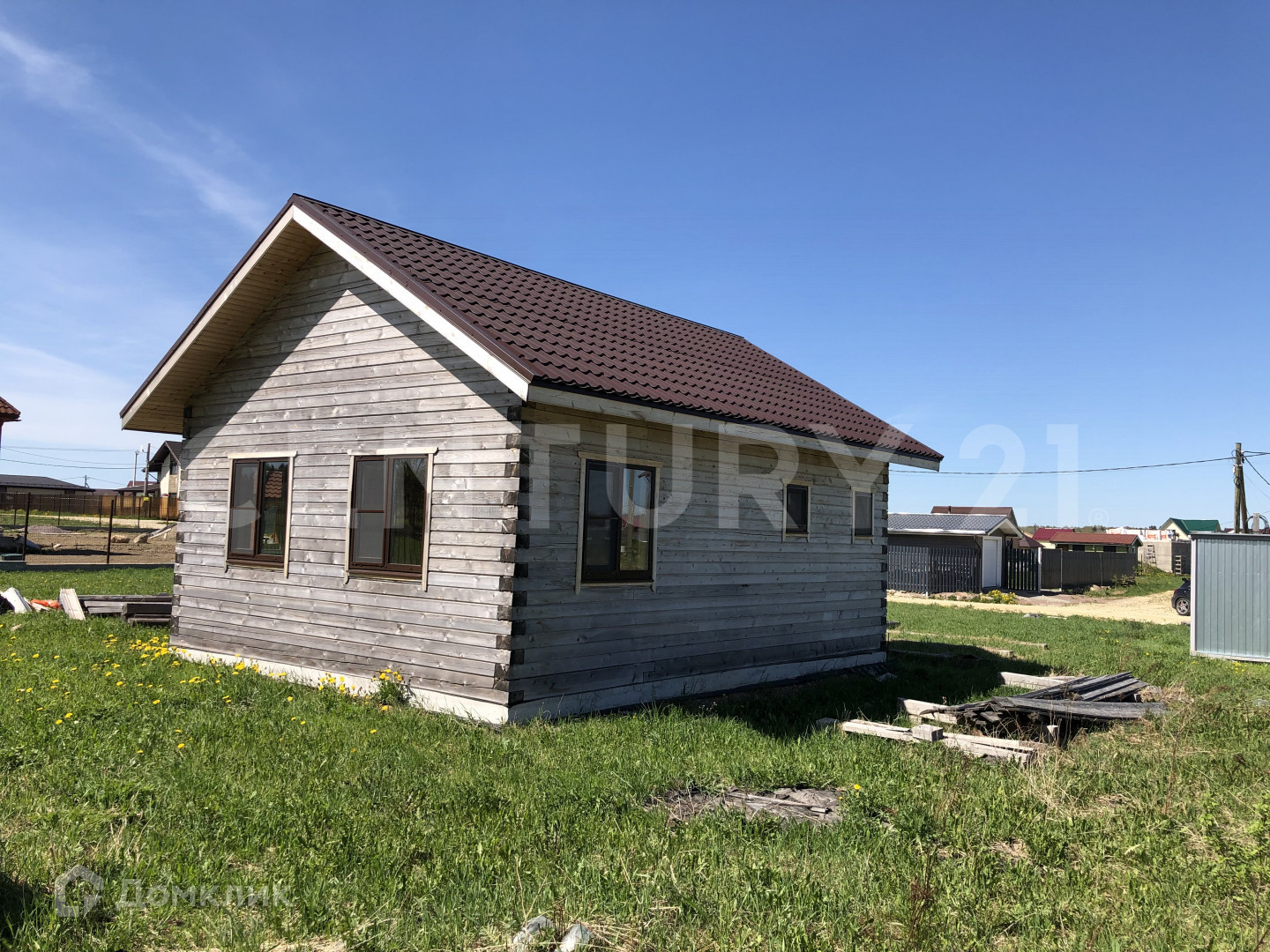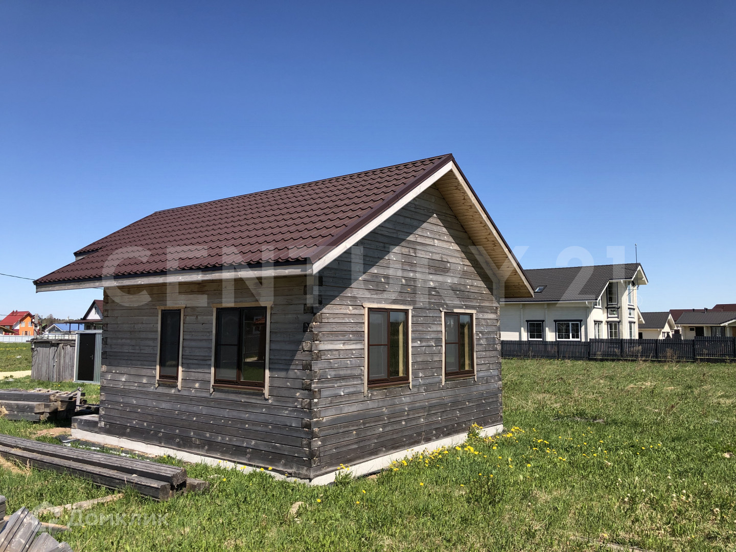 На участке построен дом 6 на 8 м. на ж/б плите, профилированный брус (135*185), тёплый контур, крыша металлочерепица, все потолки утеплены, подшиты вагонкой, в плите заготовки под водоотведение-подведение, окна металлопластик, дверь входная металлическая.