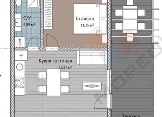 Общая площадь: 56 м2
