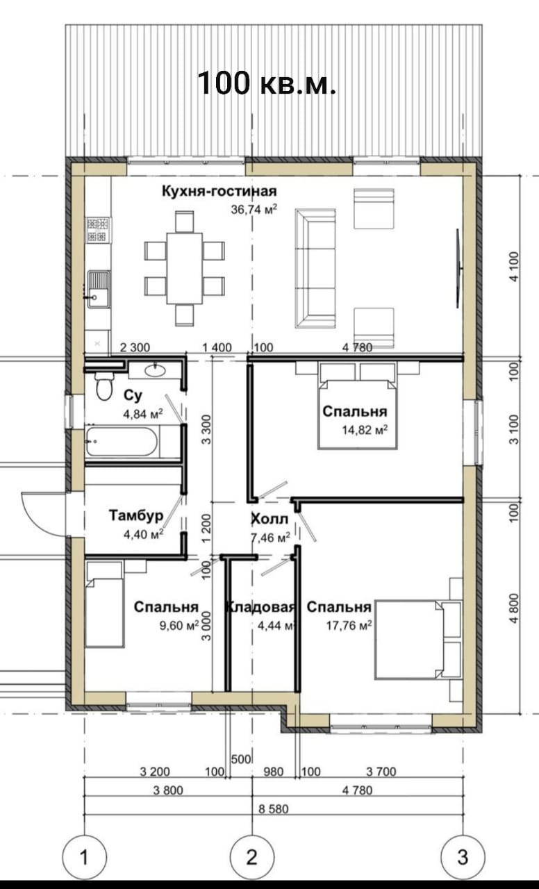Общая площадь 100 м2