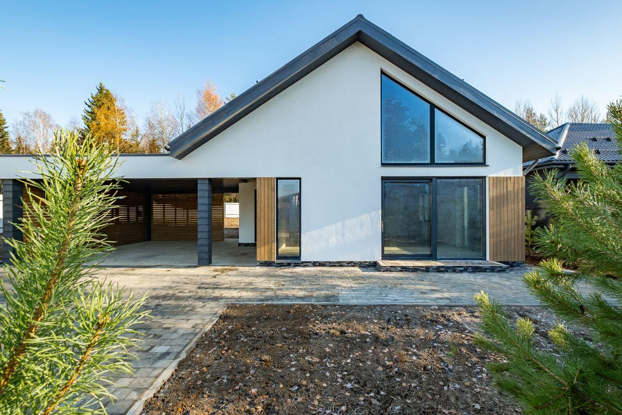 - Дом 186.4 м.кв. (3 спальни, 3 сан. узла, 1 гардеробная, постирочная,  кухня гостиная со вторым светом, котельная). Входная алюминиевая дверь, раздвижная портальная система для выхода на террасу, окна из самого теплого профиля Veka 82 мм с ультра пакетом и скрытой фурнитурой, утепления крыши 350 мм, стены 300 мм + 100 мм утеплитель, везде в доме водяные теплые полы, установлен конденсационный газовый котел + насосная группа.