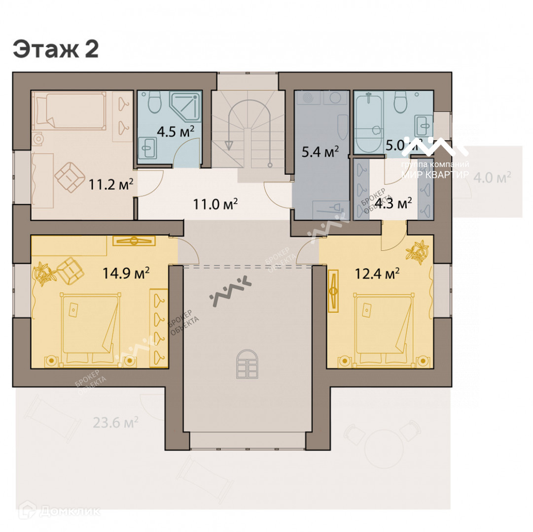 На втором этаже расположились три мастер-спальни и хозяйственная комната.