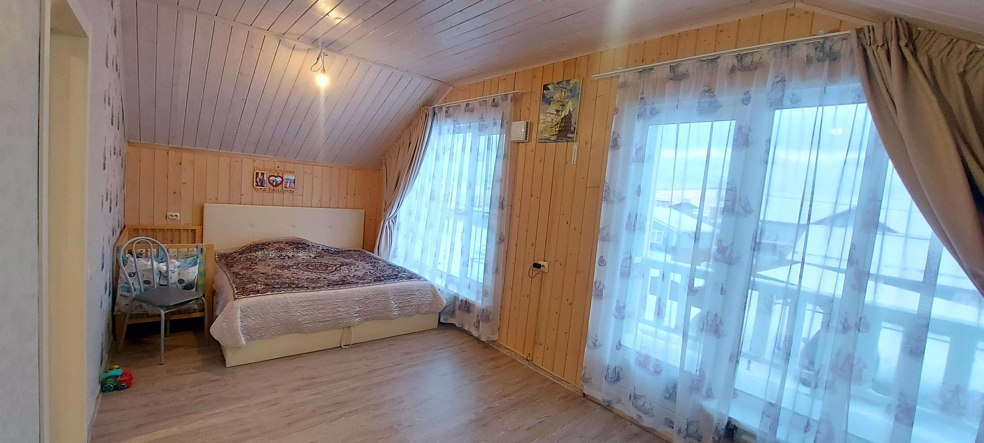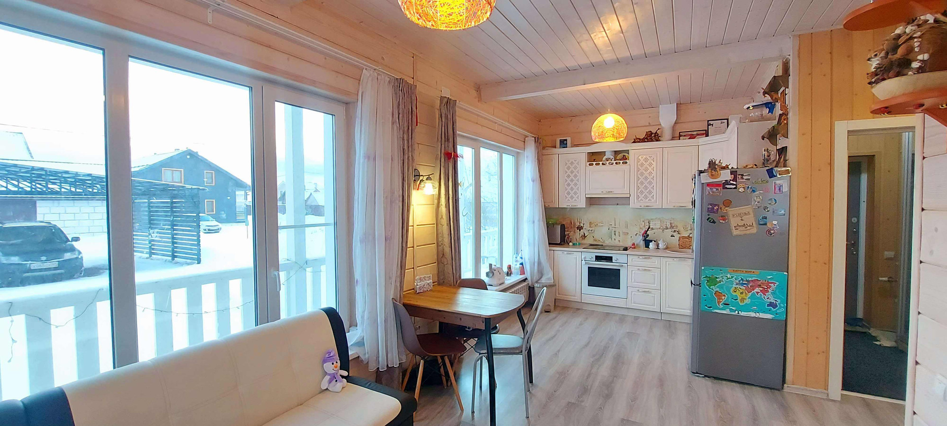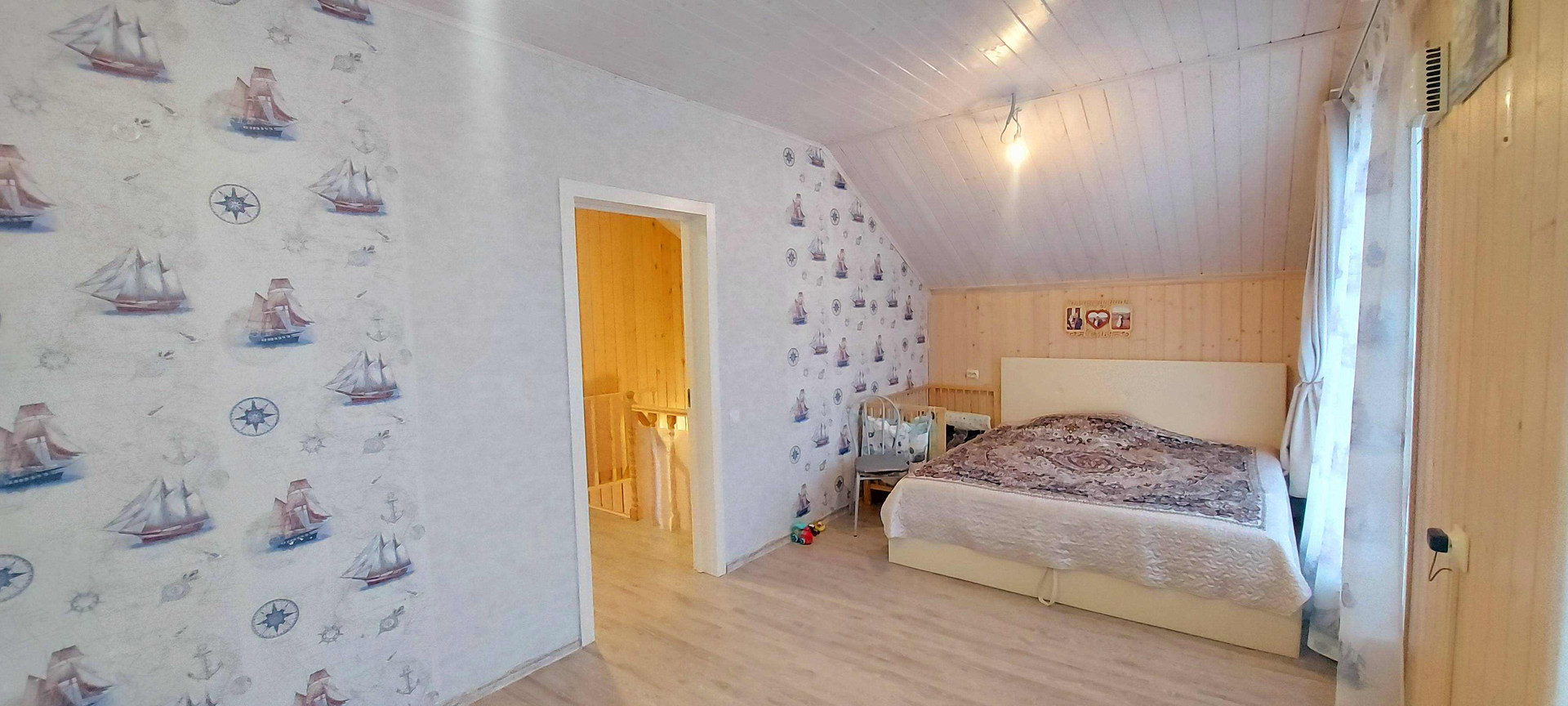 В доме 4 спальни огромная кухня гостинная.