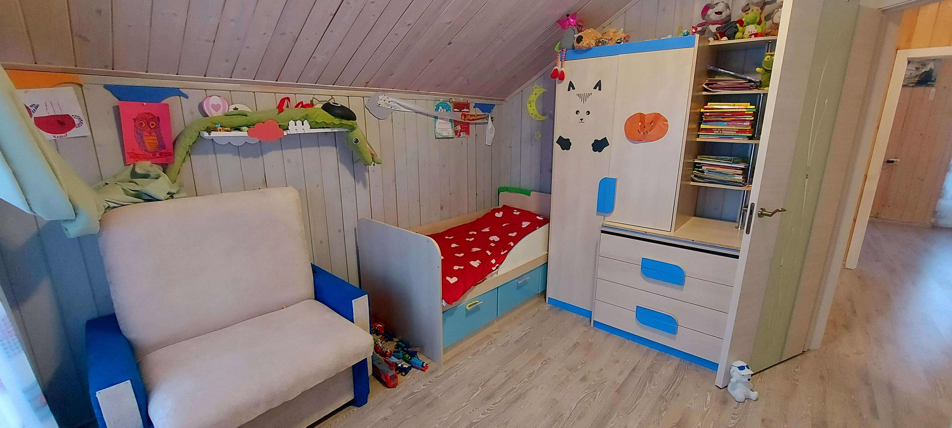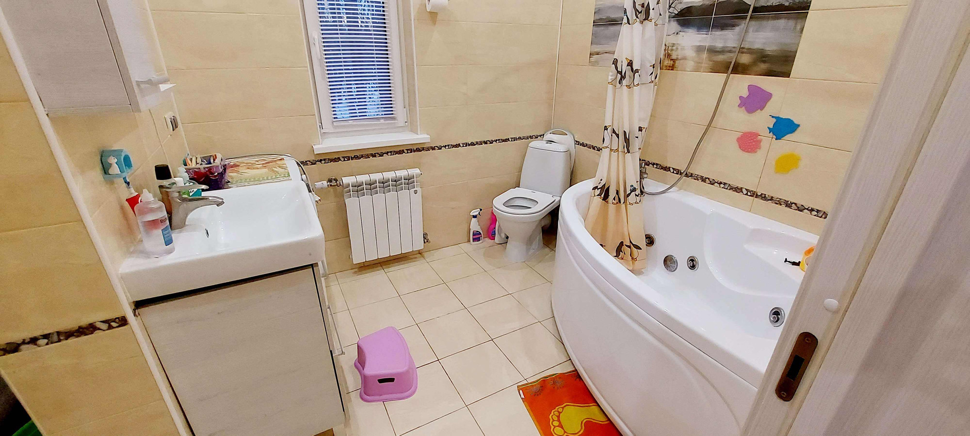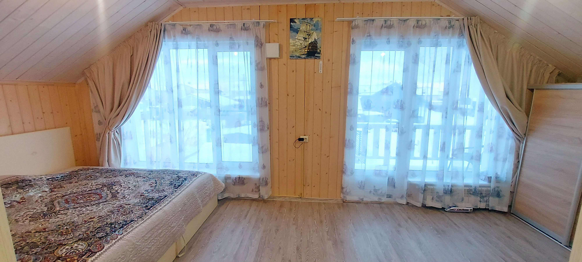 В доме 4 спальни огромная кухня гостинная.