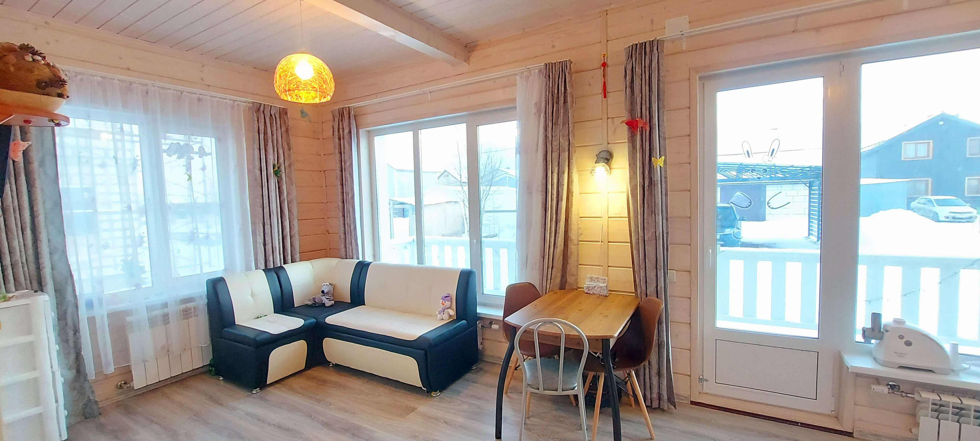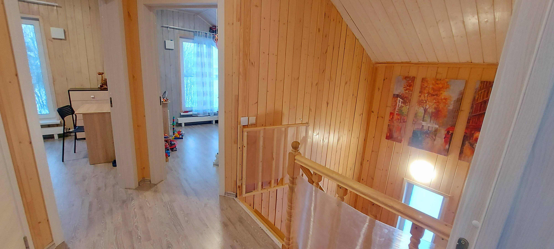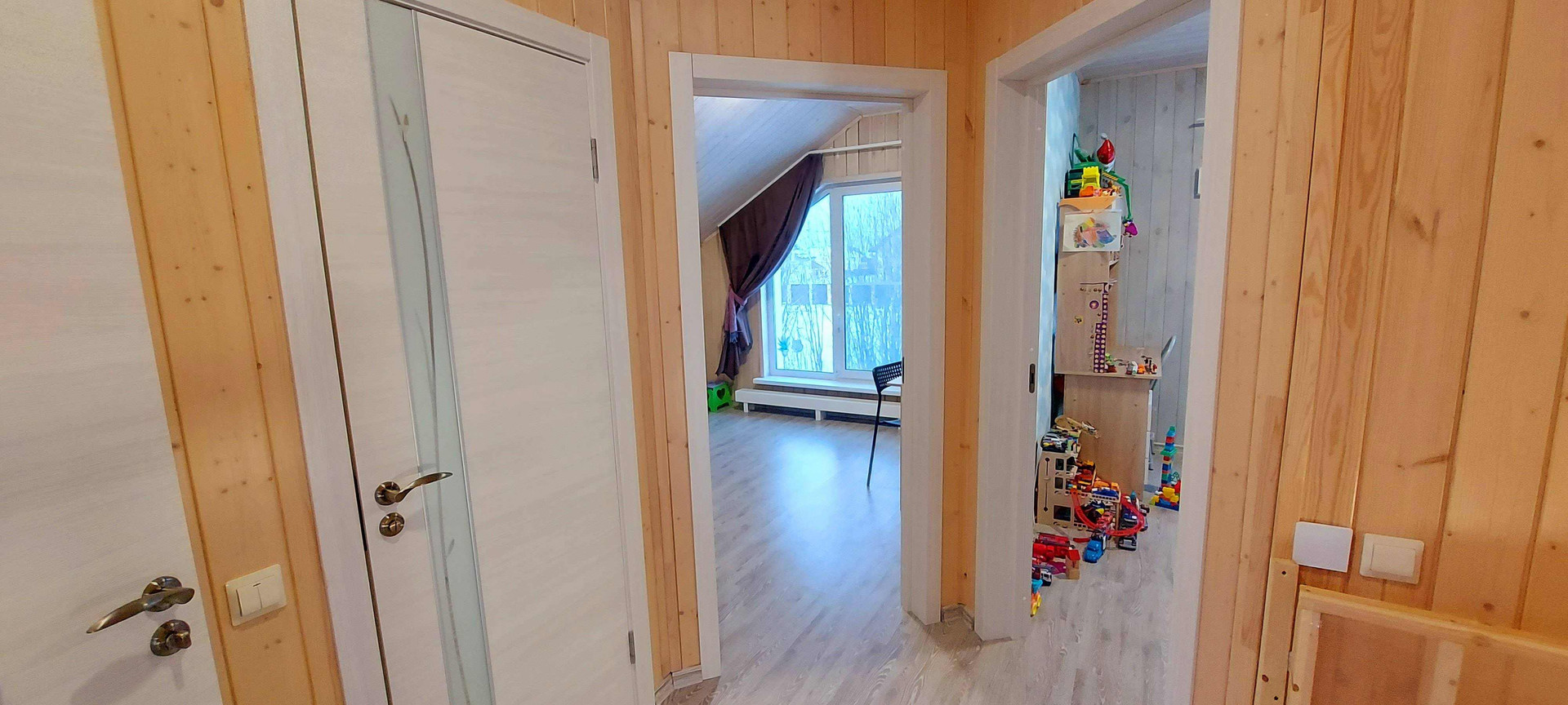 Дом расположен в п. Ёксолово в К.П. Дружное , окружён смежными коттеджными поселками и сосновыми перелесочками , подходящими как для прогулок, так и для сбора ягод и грибов.