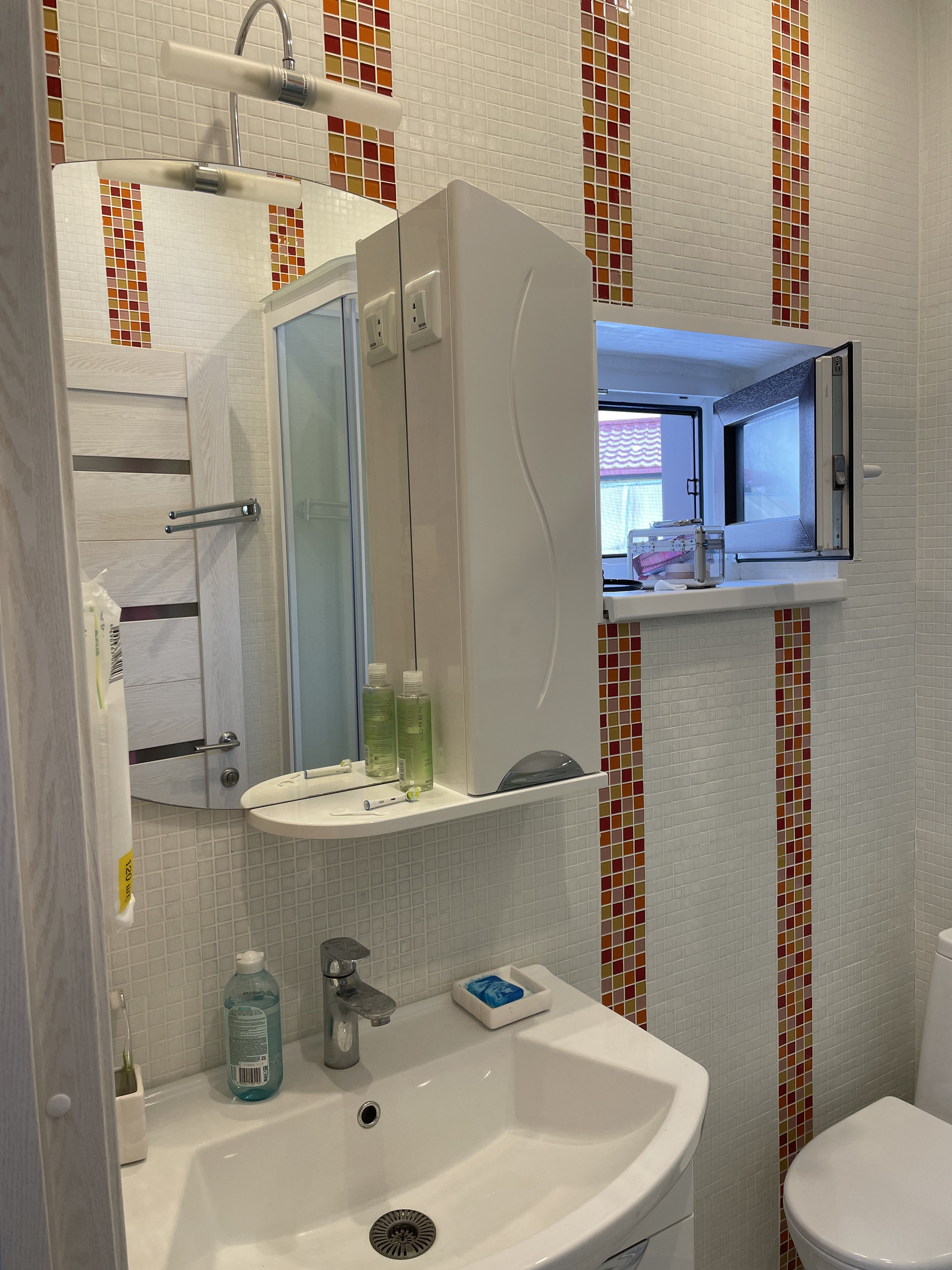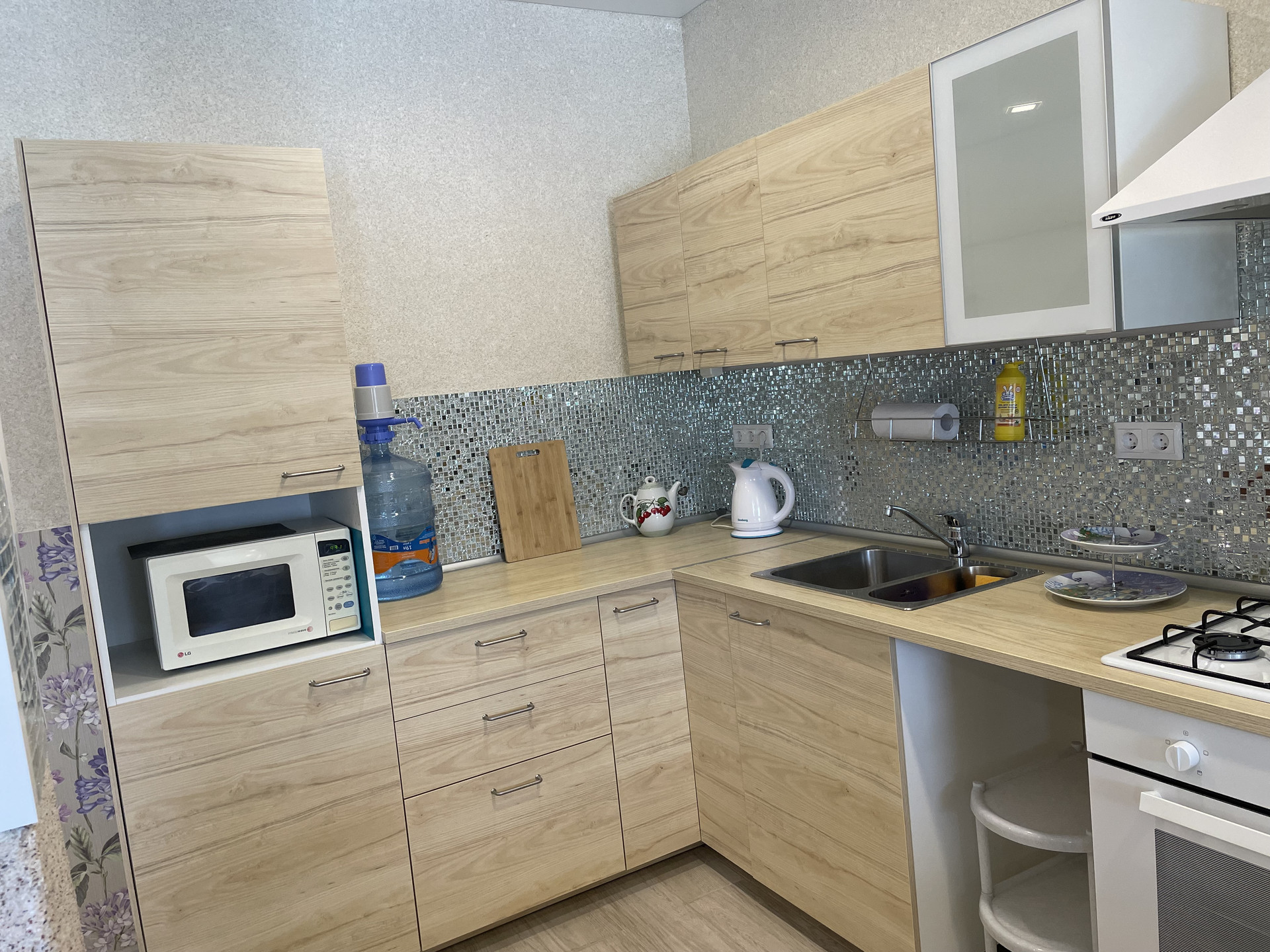 Коммуникации: электричество 15 квт, газ, канализация: ЛОС BIO DEKA-5. Газовый котел Baxi. Накопительный газовый бойлер, мембранный бак для холодной воды.