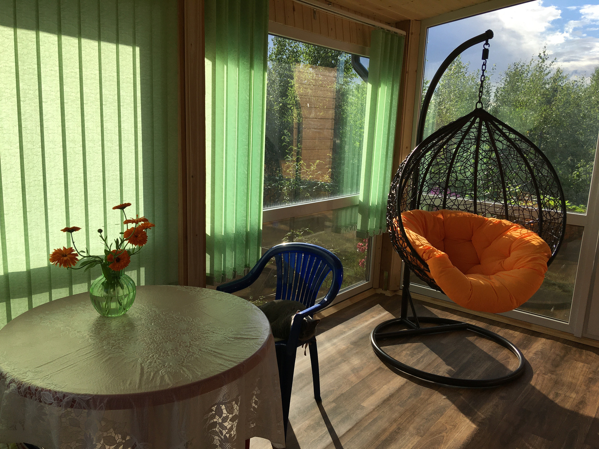 Плодово-ягодный сад заложен в 2016 году (4 яблони, 2 груши, 2 сливы, 2 вишни, 2 виргинские черемухи, 3 облепихи, 1 рябина, 2 калины, 1 боярышник, 1 бузина черная, 3 жимолости, 1 орех, 4 сорта крыжовника, 5 сортов черной смородины, красная, белая, розовая смородина, ремонтантная малина, клубника и земляника).