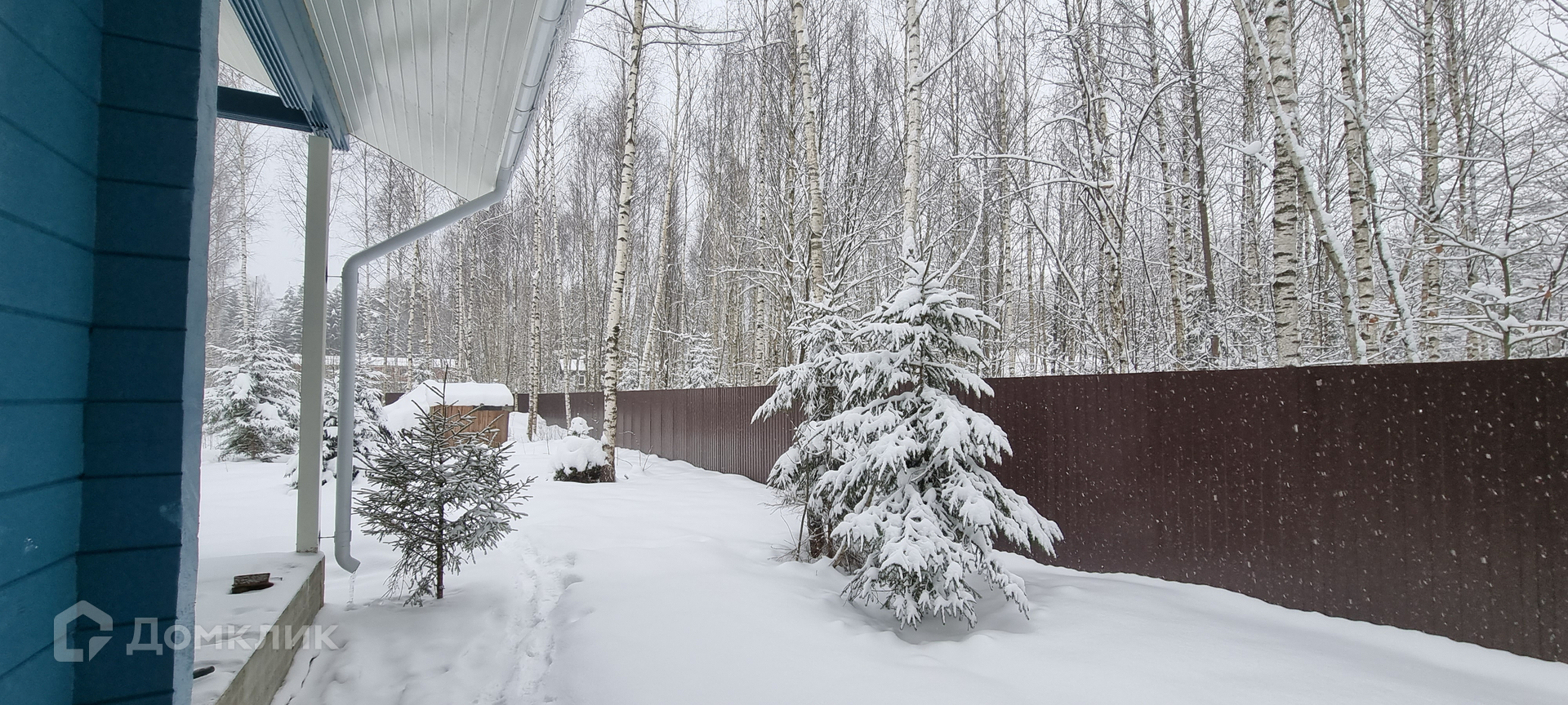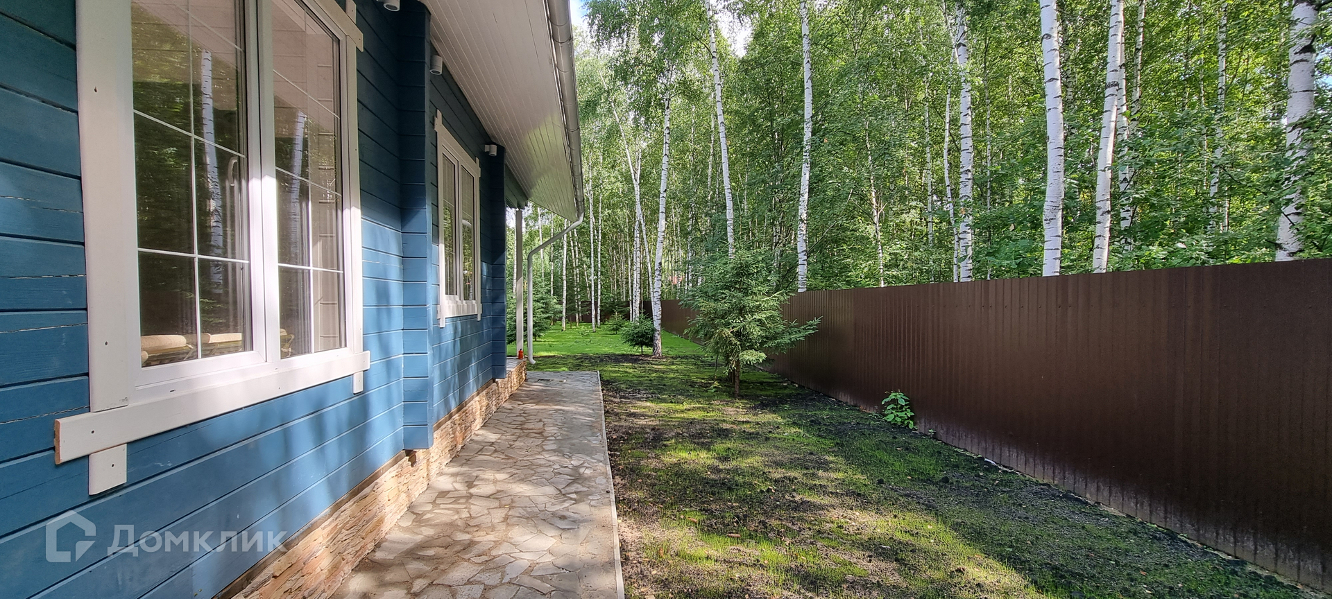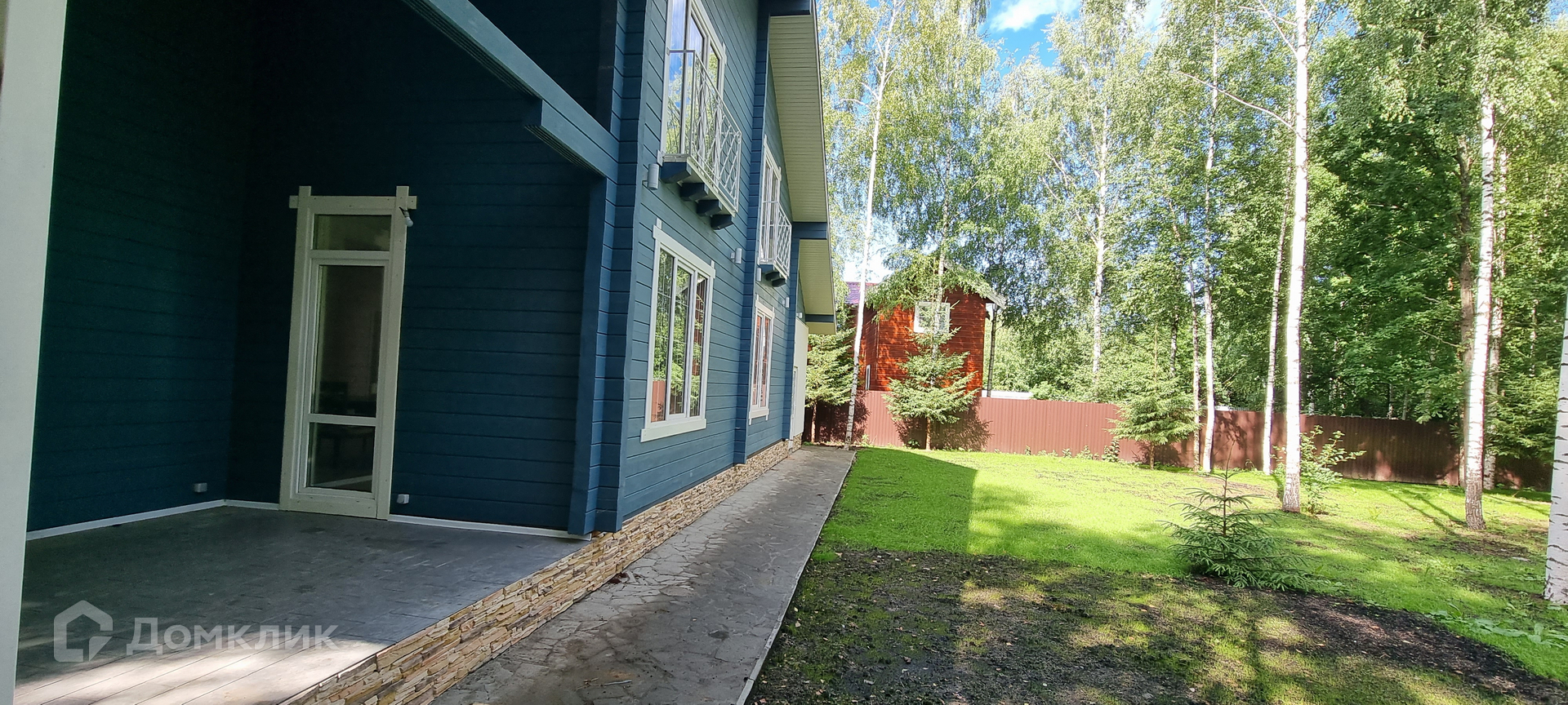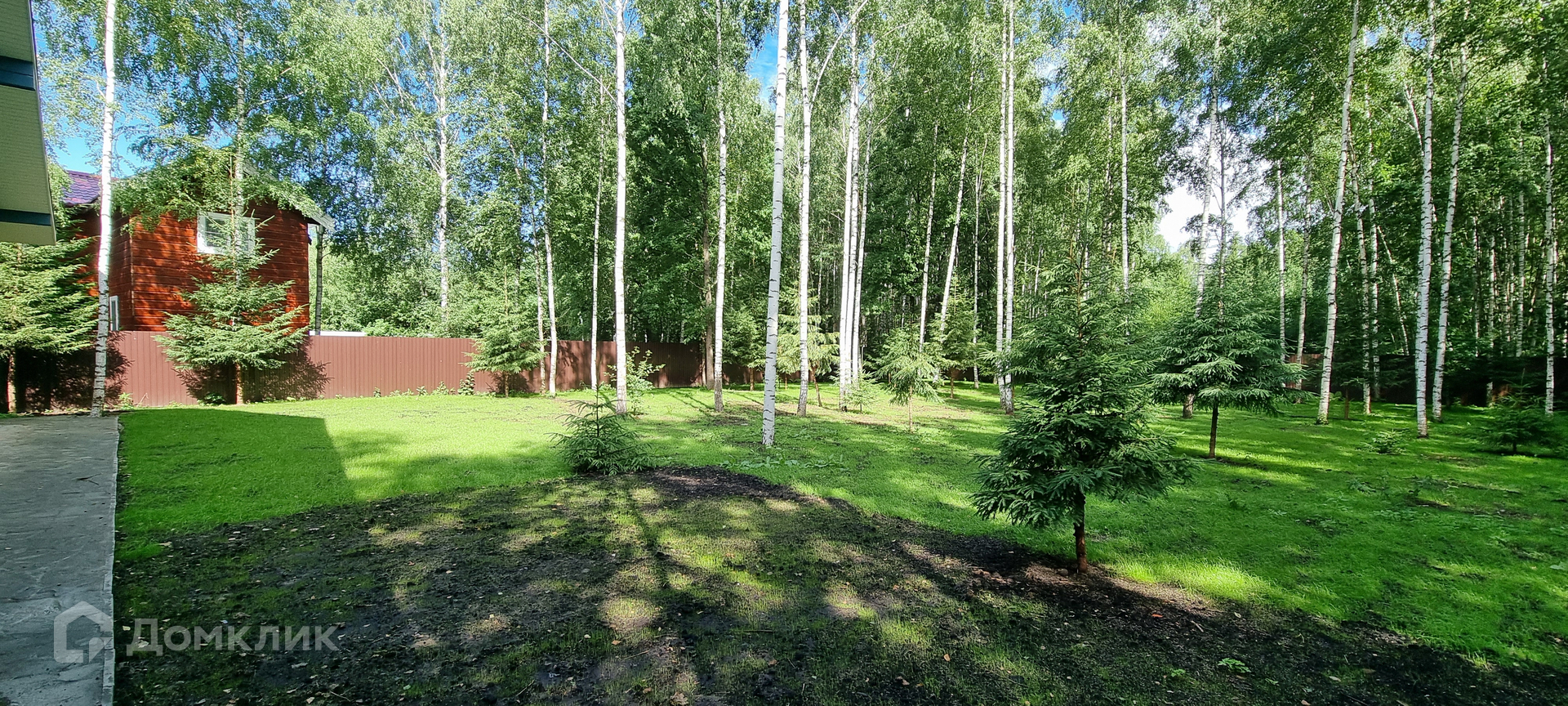 На участке 20 соток, с молодыми березами и елями.