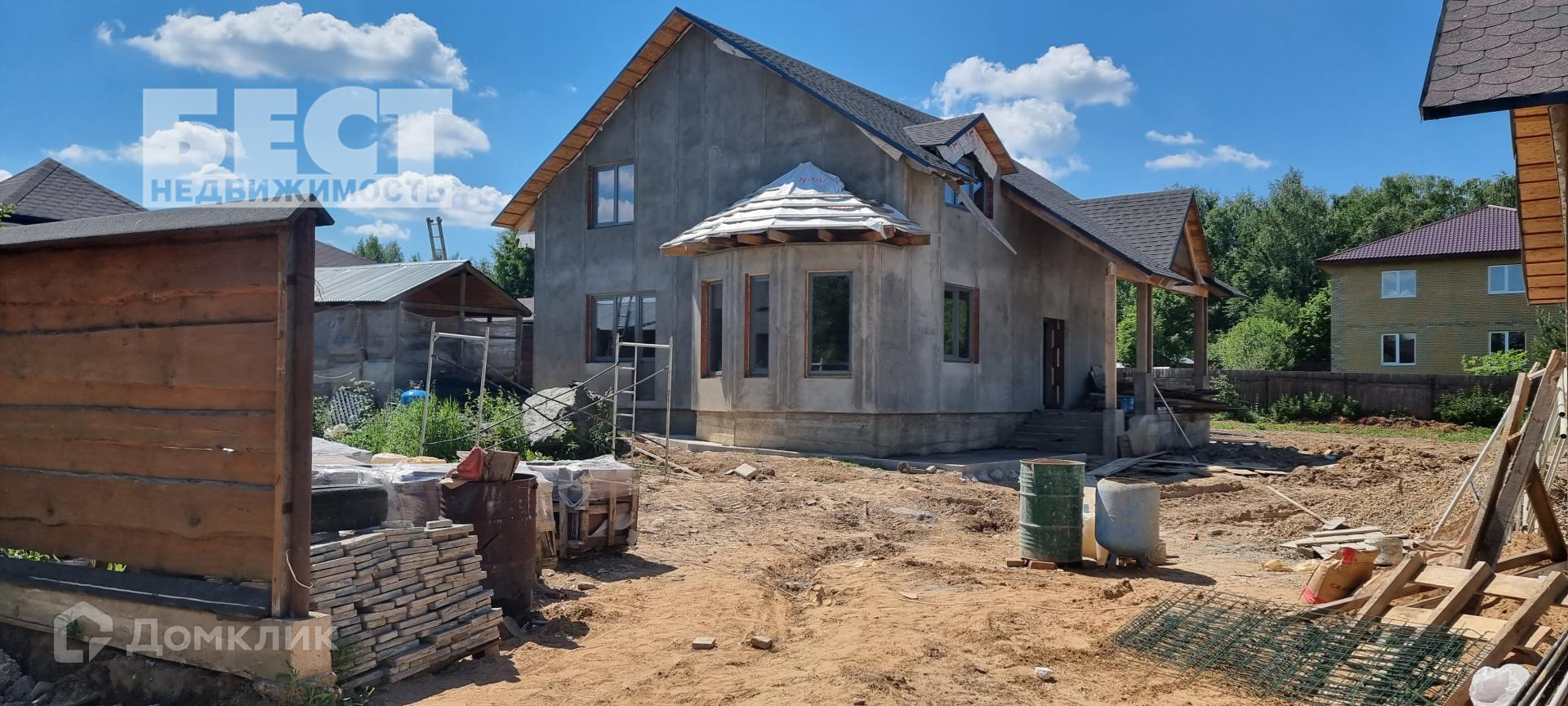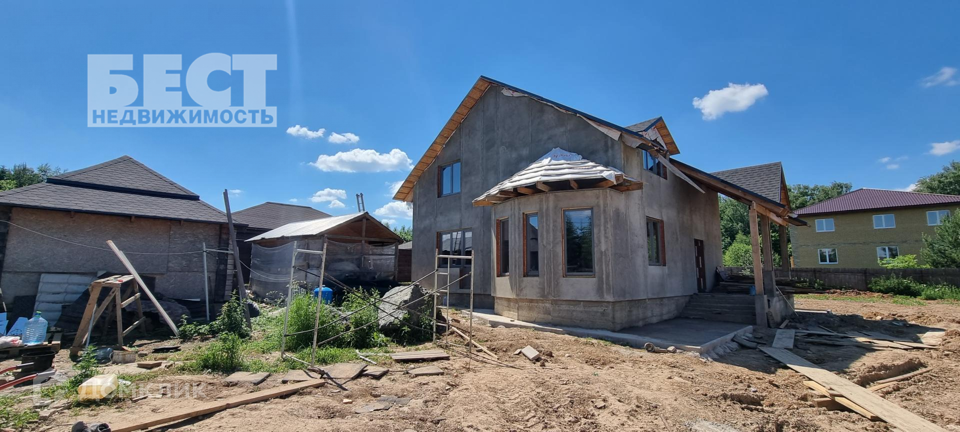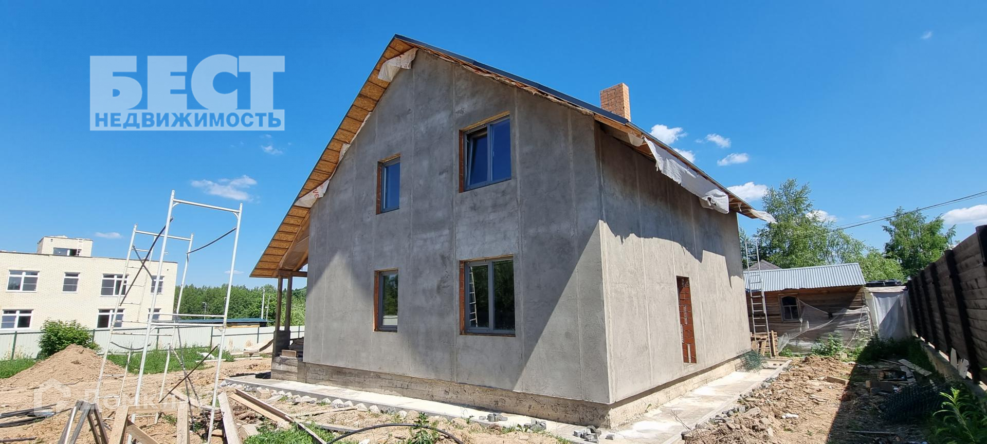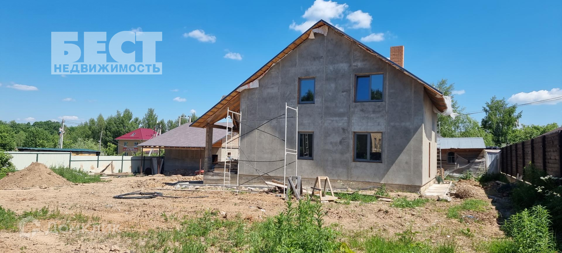 Новый дом под отделку. Большой гараж со вторым этажом, беседка.