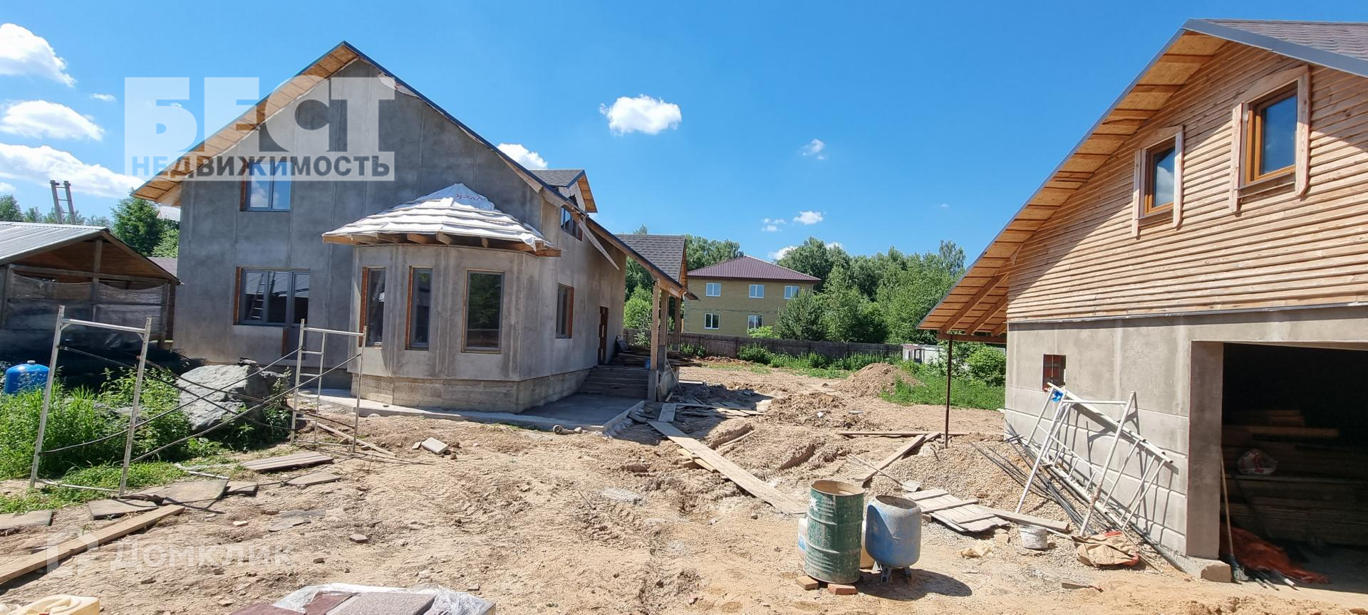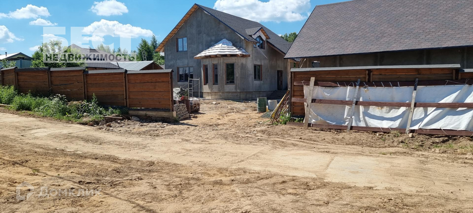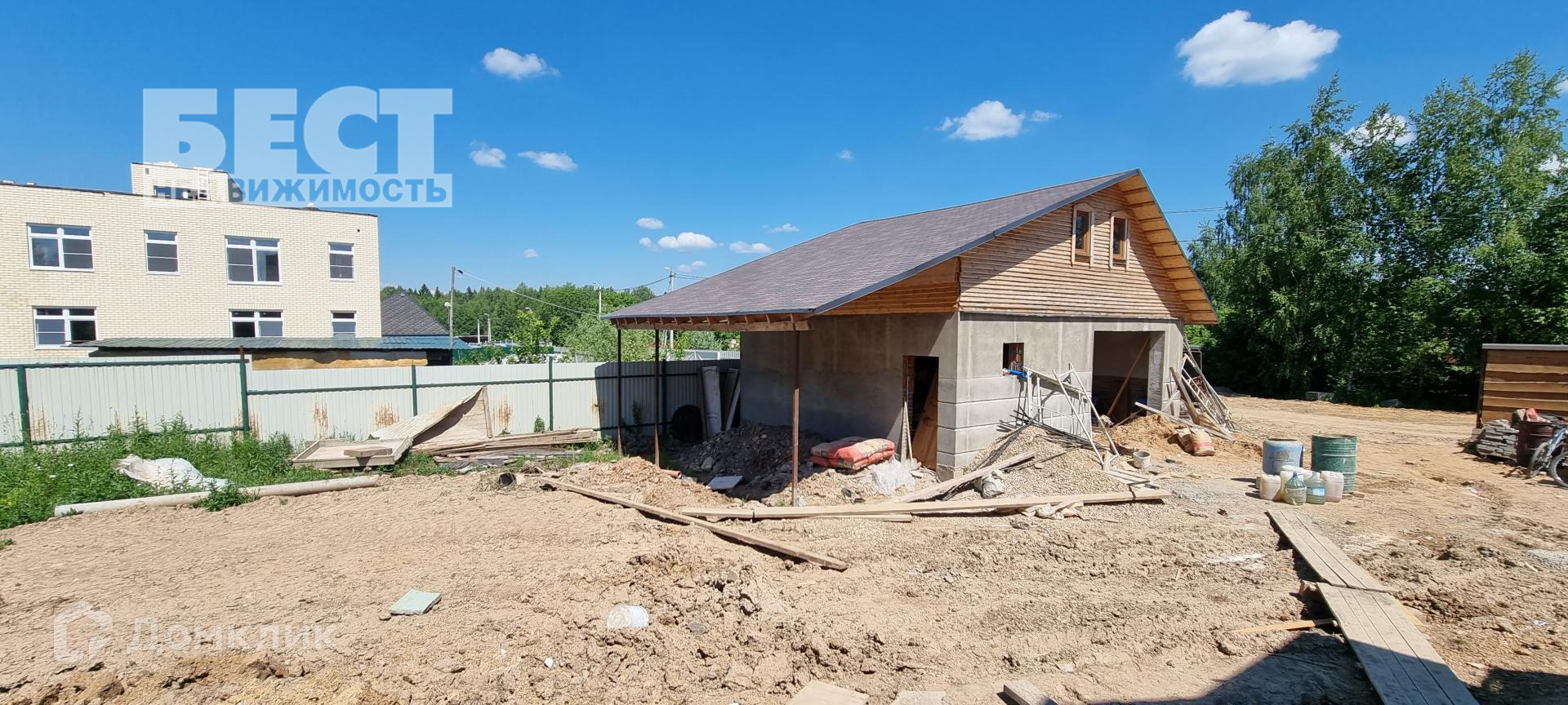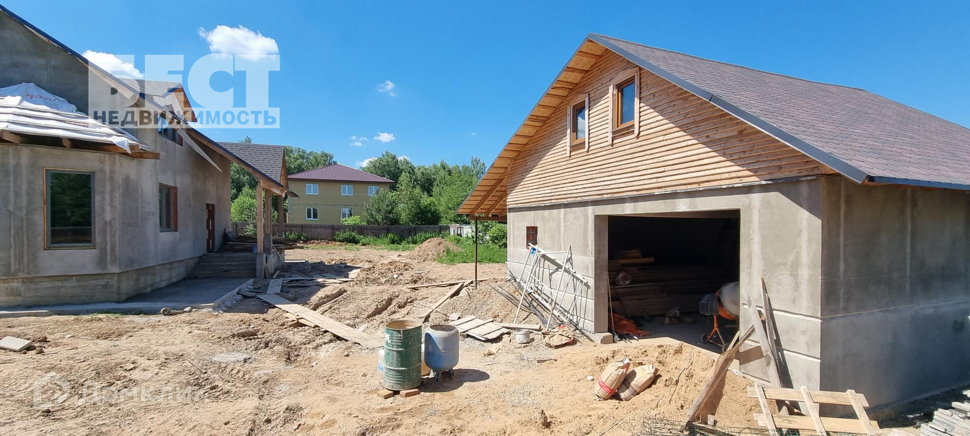 Новый дом под отделку. Большой гараж со вторым этажом, беседка.