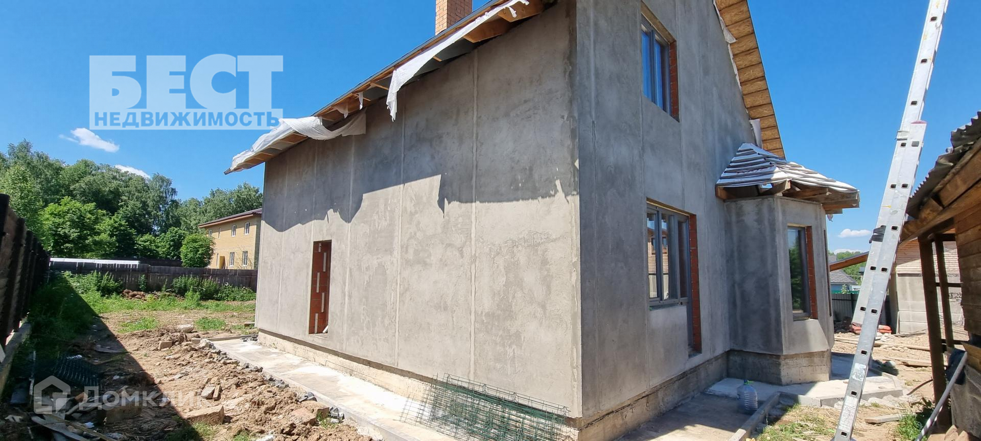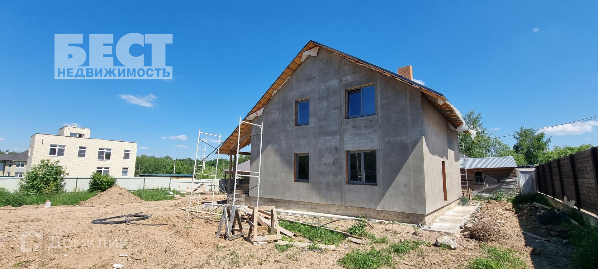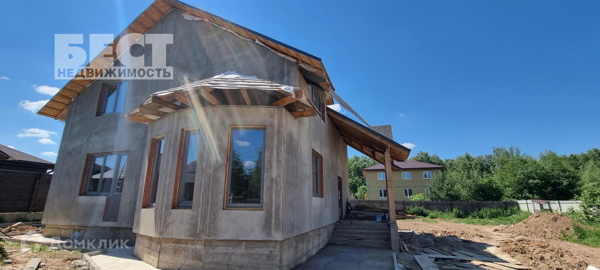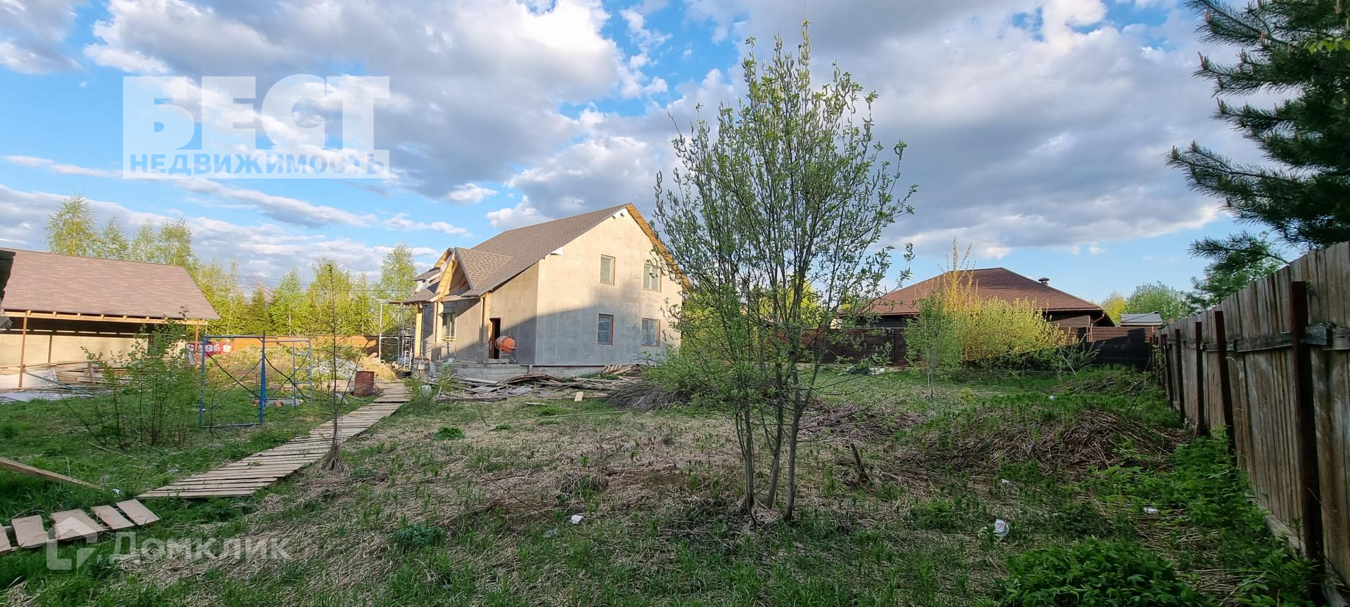 Новый дом под отделку. Большой гараж со вторым этажом, беседка.