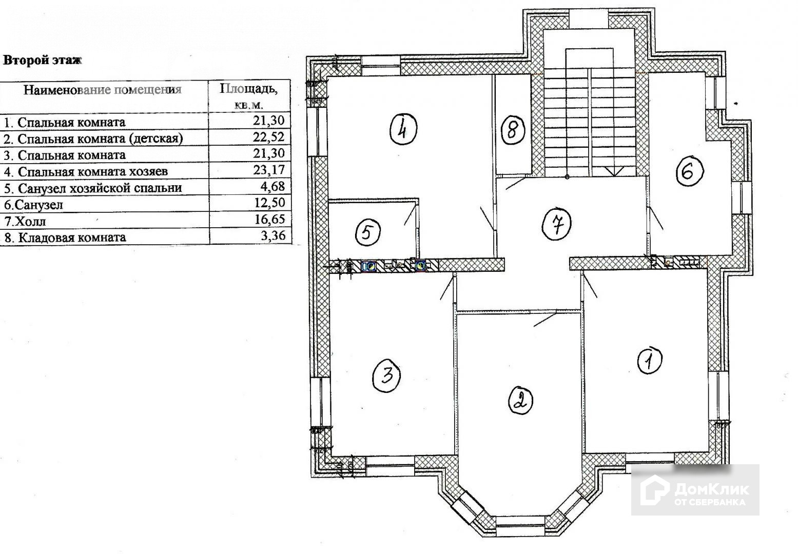 2-й этаж — 4 спальни (одна с санузлом), кладовая, санузел.