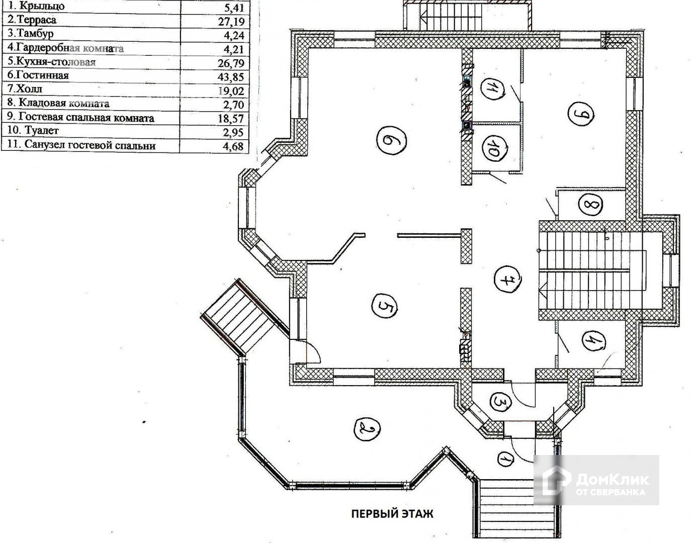 1-й этаж: кухня-столовая, каминный зал, санузел, кладовая, гардеробная, спальня с санузлом.