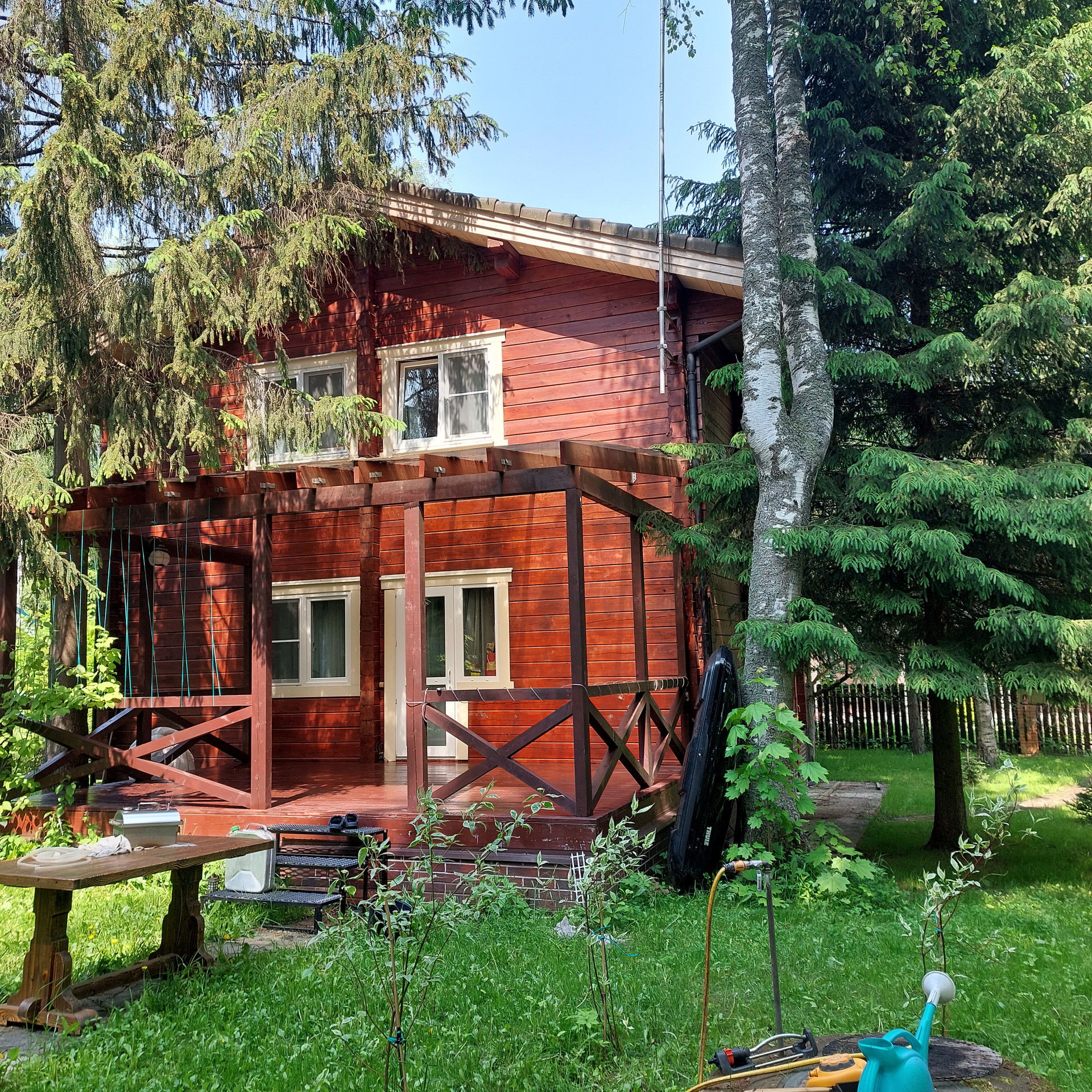 В экологически чистом районе Подмосковья,в  34 км от МКАД, в большом  коттеджном  поселке «Дубровка» продается 2-х этажный дом , площадью 120м2. Дом расположен недалеко от лесного массива, на ухоженном  и благоустроенном  участке в 10 соток, чистейший воздух, пение птиц по утрам, тишина и комфорт будут обеспечены круглый год для желающих приобрести данную недвижимость!  На 1 этаже находятся гостиная и столовая, с/у- совмещен, со стороны гостиной есть выход на  открытую веранду 6х3. На 2 этаже расположены 2 спальни и гардеробная комната. Дом предназначен для круглогодичного проживания .Магистральный газ, вода (из скажины) с системой водоочистки (можно пить из –под крана). На территории участка расположена и функционирует баня  и комната для отдыха на 2 этаже.