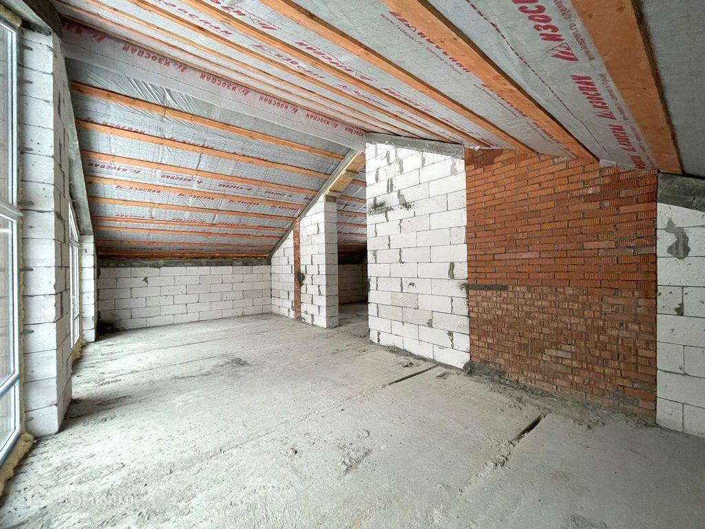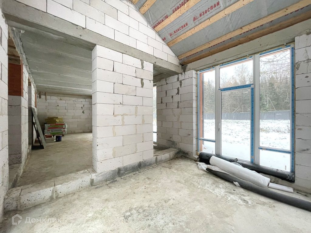 Дом выполнен из газоблока, утепленный, ж/б перекрытия. панарамные окна, дом под читсовую отделку.