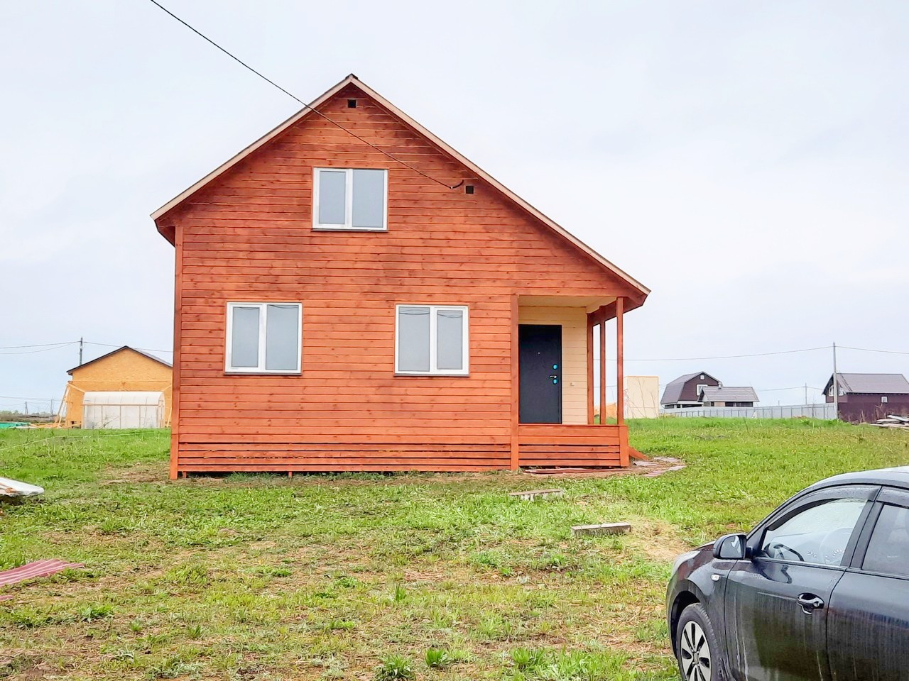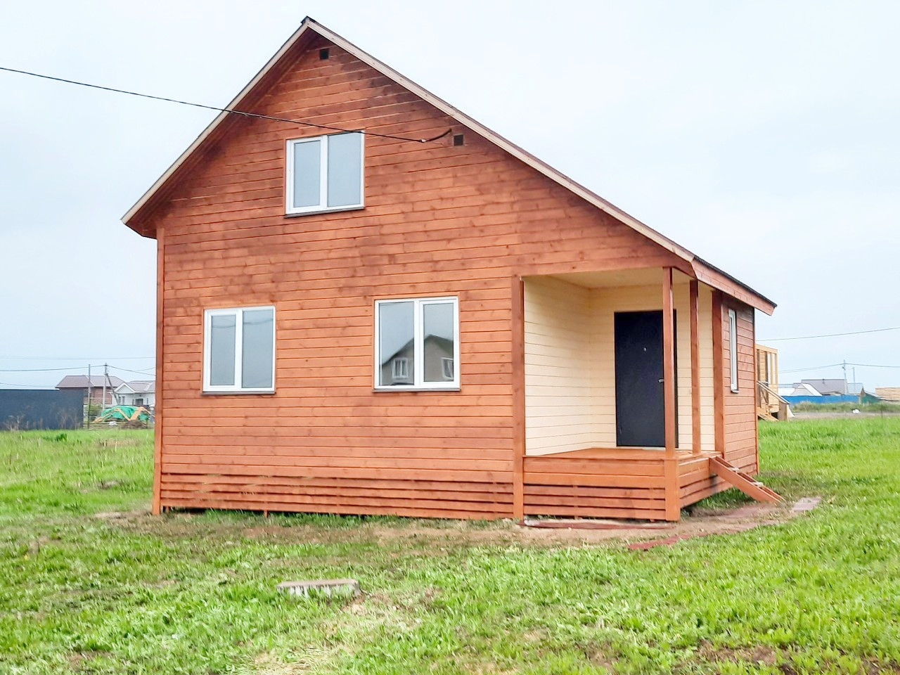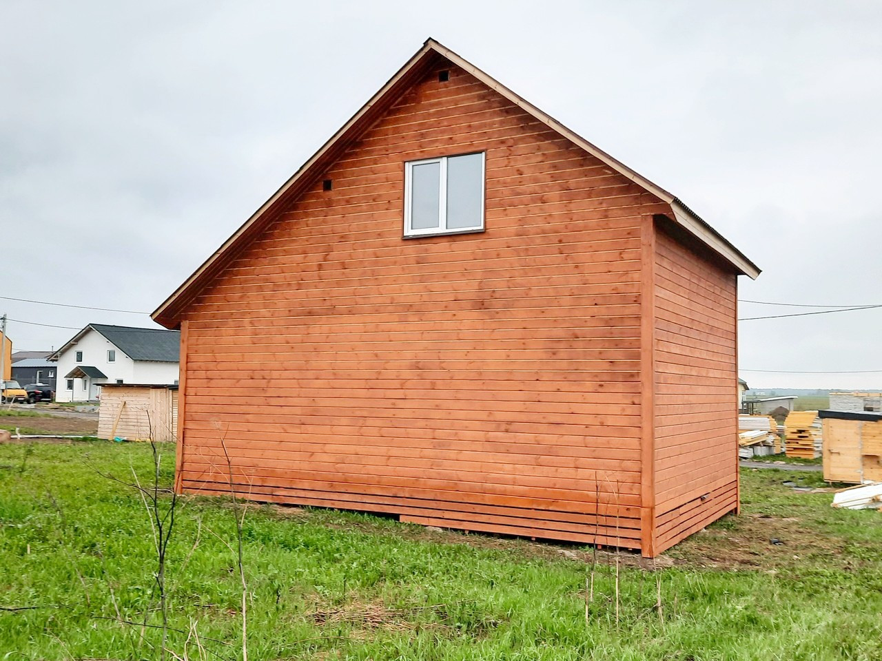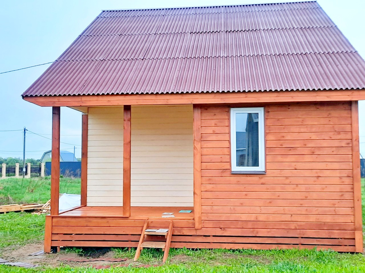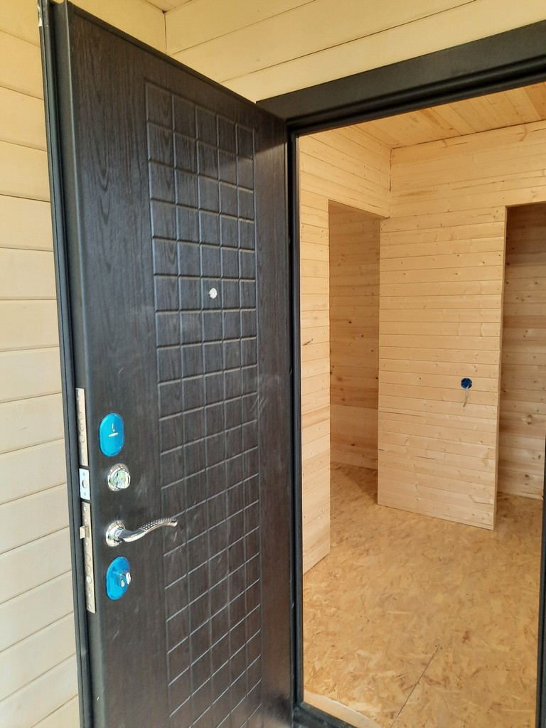 - Снаружи дом покрыт антисептиком и покрашен.
